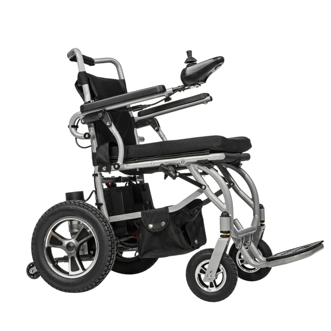 Представленная модель инвалидной коляски взрослой с электроприводом компактна в сложенном виде. Такое преимущество позволяет легко сложить ее для переноски или хранения в малогабаритных помещениях.Откидные подлокотники позволяют пользователям легко садиться и вставать из коляски, что делает передвижение более удобным и безопасным, особенно для людей с ограниченной подвижностью.