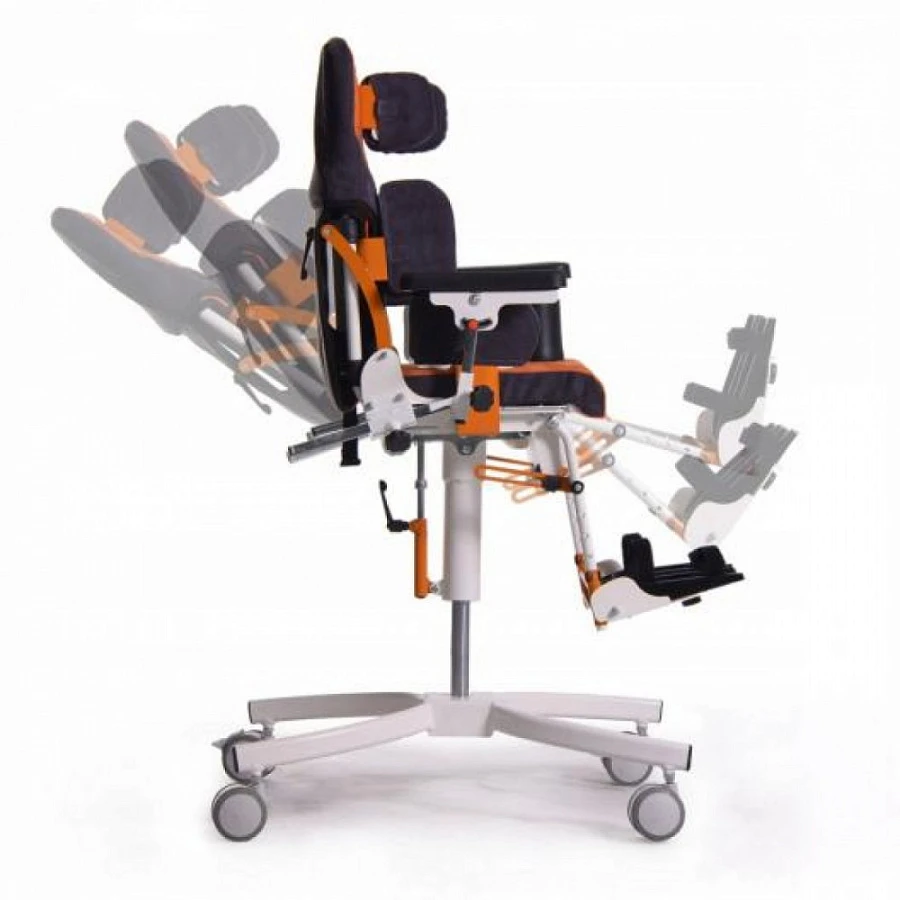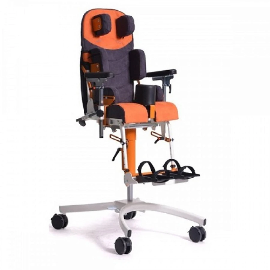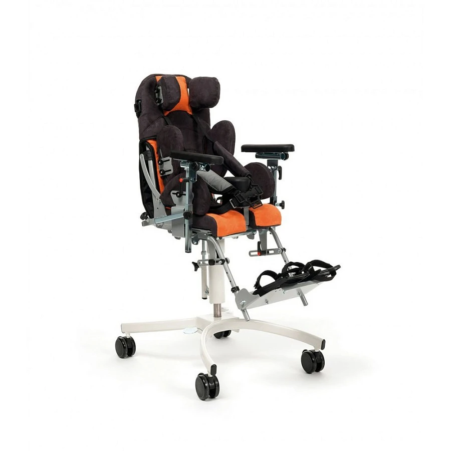 Детское кресло-коляска бельгийской компании Vermeiren Gemini BAYO представляет собой ортопедическое сидение для детей с заболеванием ДЦП на комнатном шасси и позволяет заниматься с Вашим ребенком обучением, реабилитацией и всеми видами активности непринужденно и в удовольствие. Общение с друзьями и окружающим миром становится интереснее и менее утомительно. Родители могут на короткое время оставить своего ребенка в кресле, например, чтобы приготовить еду. Сидение BAYO идеально подходит для использования не только в небольших квартирах, но и в таких учреждениях, как детские сады и школы. Ортопедическое кресло сконструировано таким образом, что позволяет максимально стабилизировать положение тела ребенка. Контурные подушки и широкий ассортимент ремней и поддержек помогают создать высокий уровень комфорта и правильно спозиционировать посадку малыша. Спинку можно отрегулировать по высоте и углу наклона, сидение регулируется по глубине и по углу наклона, съемная подножка также настраивается по высоте и углу подъема. Обивочный материал ALCALA, используемый в изготовлении многофункционального кресла мягкий, приятный на ощупь, дышащий, устойчивый к скатыванию, огнестойкий, легко моется. По желанию клиента можно установить различные по форме подголовники , дополнительные фиксаторы , раздельные сандалии на подножку и многие другие опции для удобства и безопасности ребенка. Компактная и легкая рама плавно регулирует высоту сидения и делает кресло маневренным и практичным.
