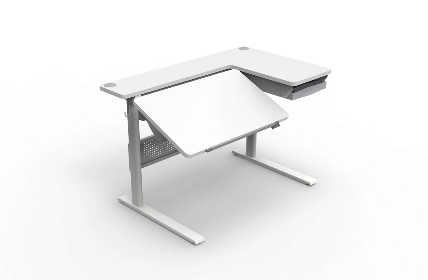 - Наклонная столешница (многоступенчатая фиксация) облегчает письмо, чтение, рисование и занятия эрготерапией.
