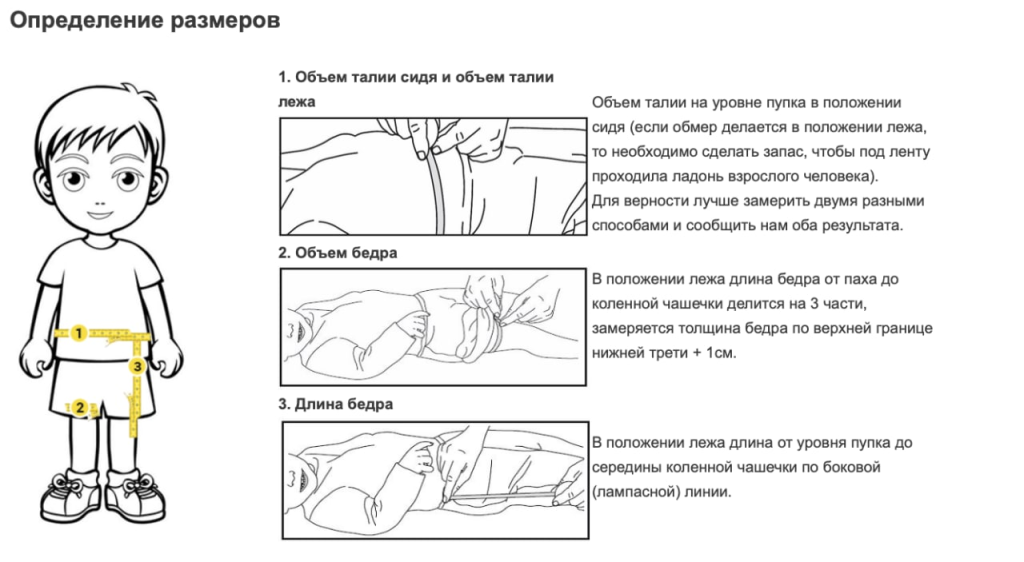 1. Измерить окружность талии ребенка в позе “Сидя” или “Лёжа”;