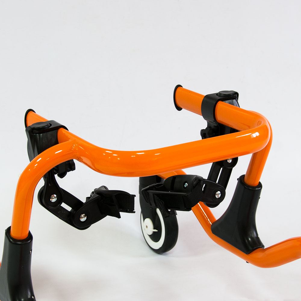 Фиксаторы голеностопов с удобными мягкими обхватными ремешками прочно крепятся к раме. Фиксаторы можно отрегулировать по длине шага и необходимому расстоянию между голеностопами.