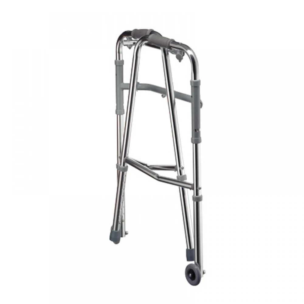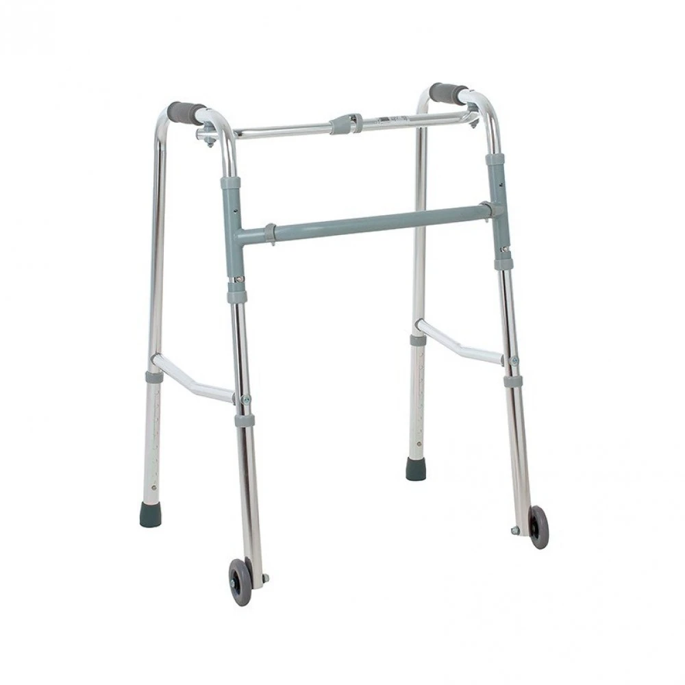 Передняя часть оборудована 2-мя колесными опорами, что позволит передвигаться более быстрей, при этом прилагая меньше усилий. Сделанные кнопки-фиксаторы позволят хранить ходунки как в разложенном, так и сложенном виде. Данная модель позволит вам быстро пройти реабилитационный период или станет отличным партнером на время пользования.