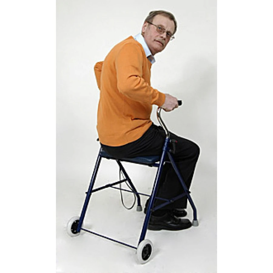 Опоры-ходунки, имеющие сиденье RollDuo – это модернизированные ходунки-опоры, которые были дополнены удобным сиденьем. Располагается оно между ручками опоры. Теперь передвижение пациента станет еще комфортней, ведь в любой момент, если он устанет, сможет присесть и отдохнуть. Сделана рама из стали, легкого и прочного материала, что позволит применять устройство пациентам весом 100 кг.