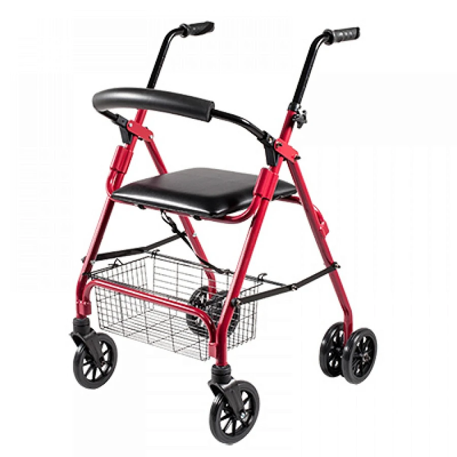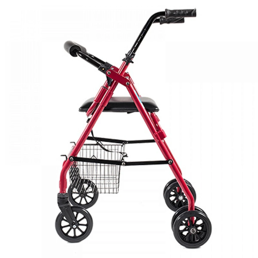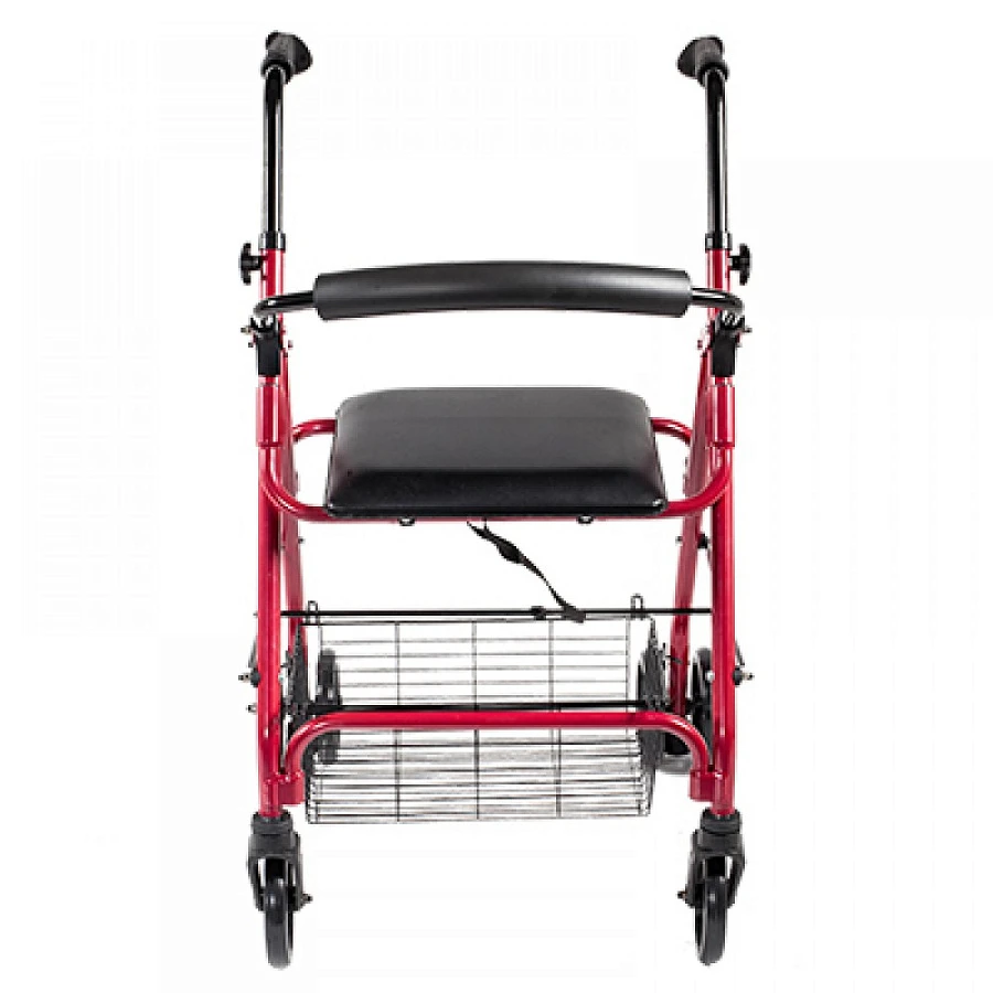 Комфортабельное проведение отдыха - дополнительное сиденье из искусственной кожи, полукруглая опора под спину, корзина для вещей. Безопасность обеспечивается задними фиксирующимися колесами, блокировка происходит при небольшой опоре на поручни.