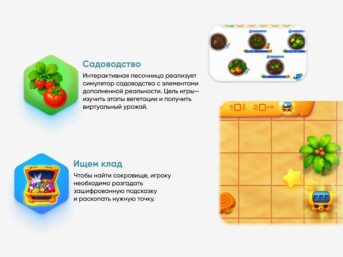 - оборудование: сенсорный экран (7 дюймов, с поддержкой 5 одновременных касаний), проектор, компьютер, датчик Kinect, мышка, клавиатура;