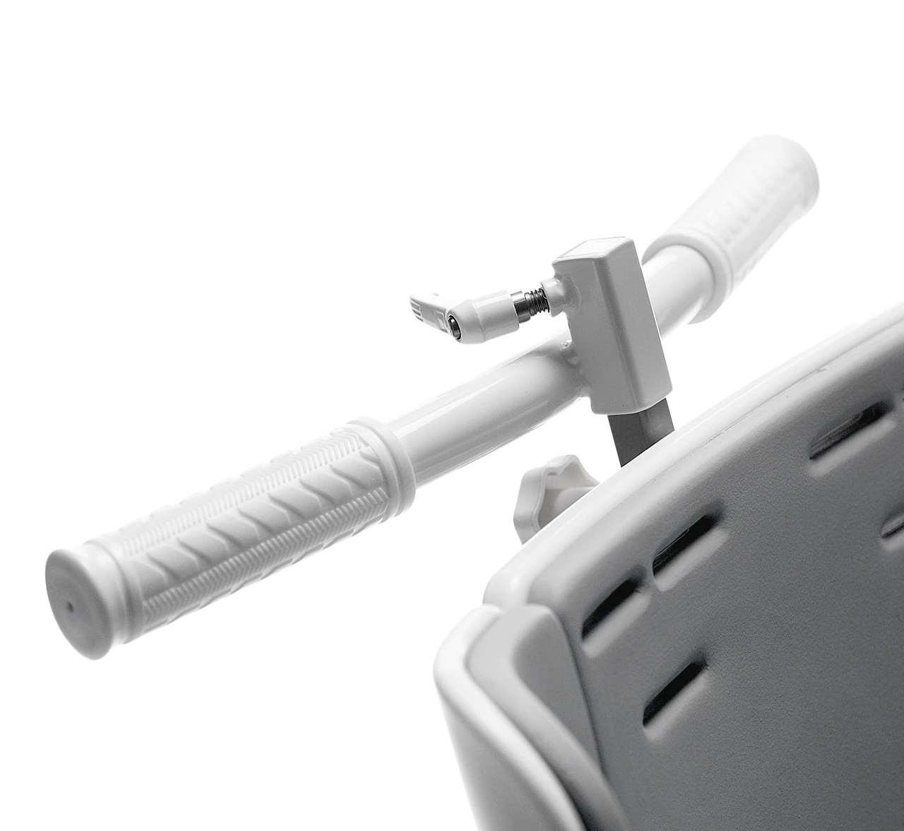 - Рама поднимается и опускается, а сиденье можно снять и установить на унитаз или в ванну