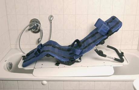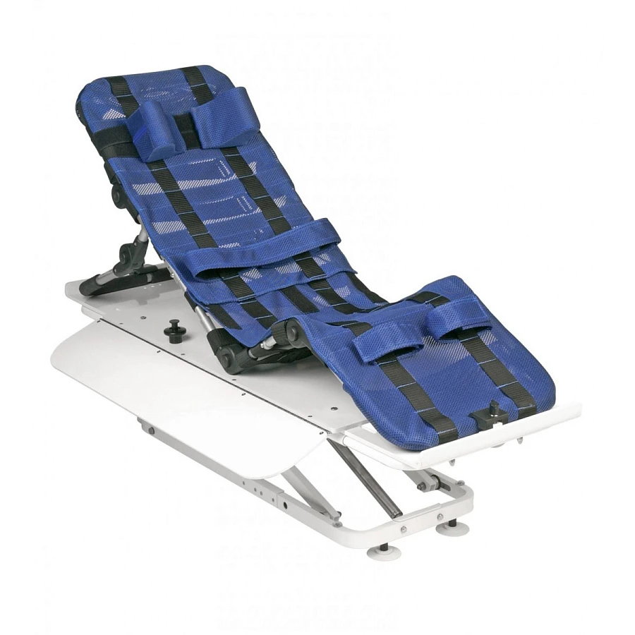 Благодаря небольшой конструкции Робби легко вынимается из ванны, компактно складывается и ее можно легко перевозить. В базовую комплектацию Робби входят ремни, фиксирующие грудь и ноги.