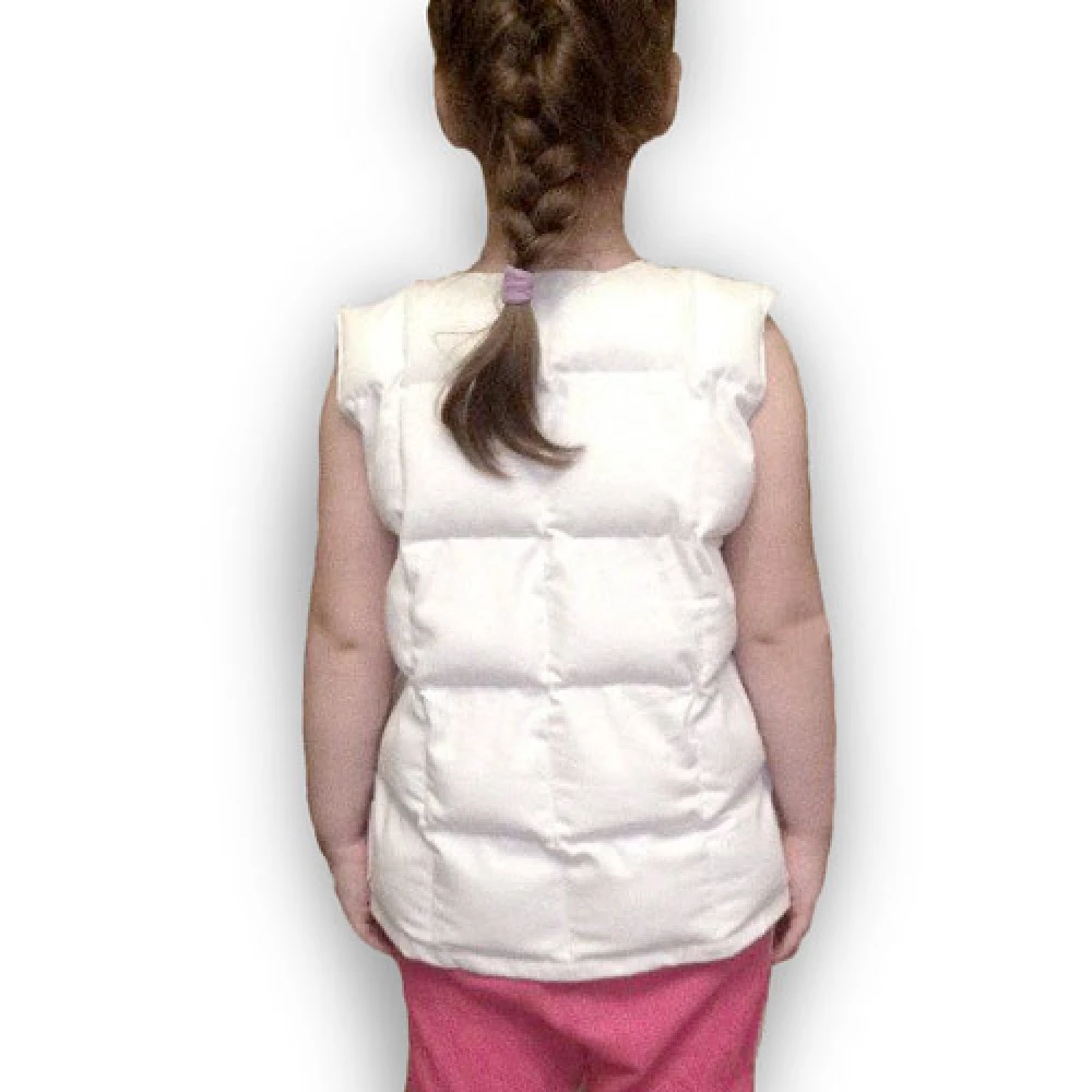 - Утяжеленный жилет успешно использует и в работе с гиперактивными детьми. Ощущение давления извне успокаивает, концентрирует внимание.