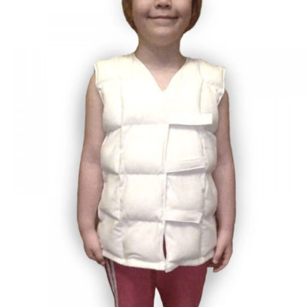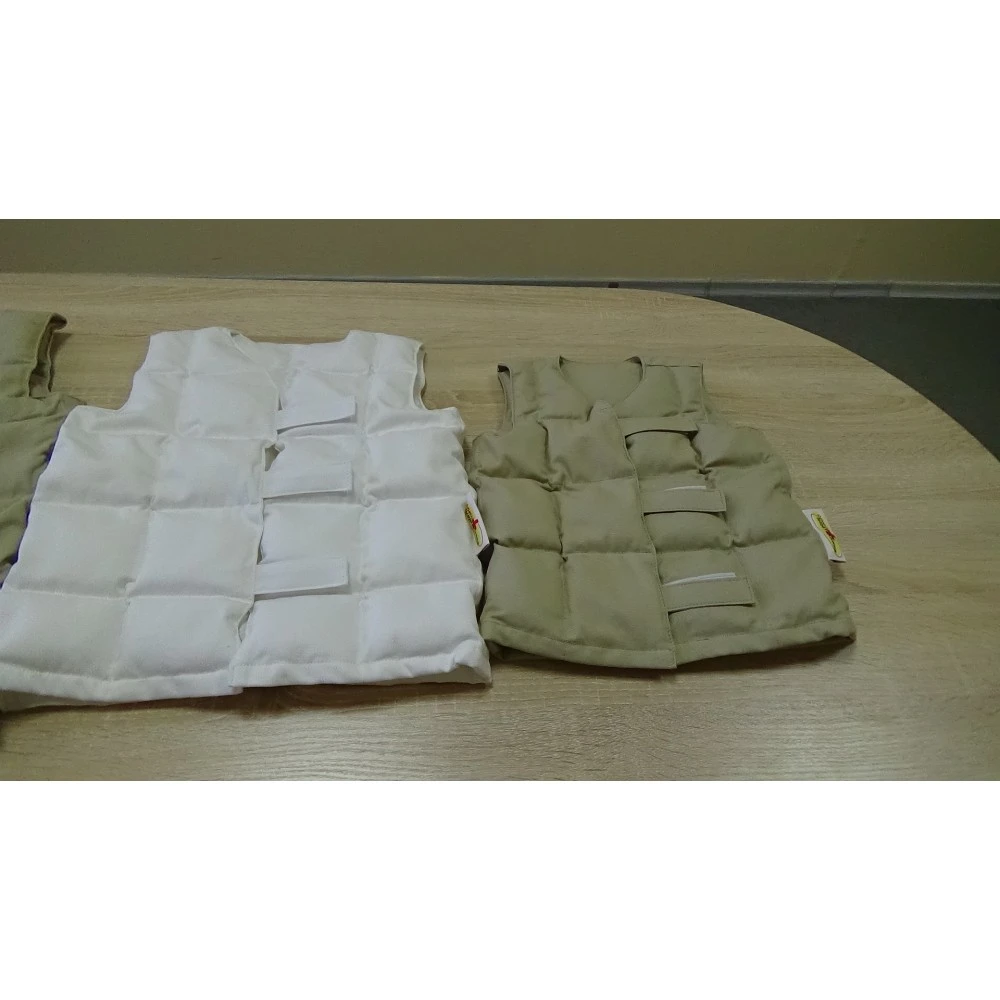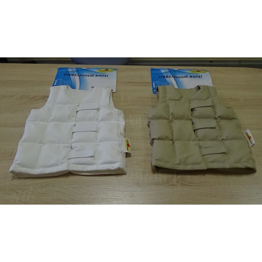 Утяжеленный жилет для сенсорной реабилитации отличается от утяжеленного спортивного жилета. В реабилитационном утяжеленном жилете важно равномерное распределение наполнителя по всему жилету, благодаря которому оказывается глубокое давление на тело и стимуляция проприоцептивной обратной связи.