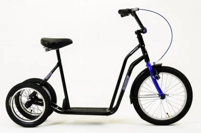 Самокат для детей с ДЦП не сильно отличается от обычного детского самоката. Полностью сохранен принцип катания – ребенок должен отталкиваться ногой от земли, тем самым набирать скорость хода. В самокате “Вперед” предусмотрена трехколесная конструкция для обеспечения устойчивости ТСР. Также самокат оснащен анатомическим сиденьем, которое может служить как основная или дополнительная опора при катании. Самокат снабжен хорошим тормозом, который позволяет замедлять ход без ножного торможения.