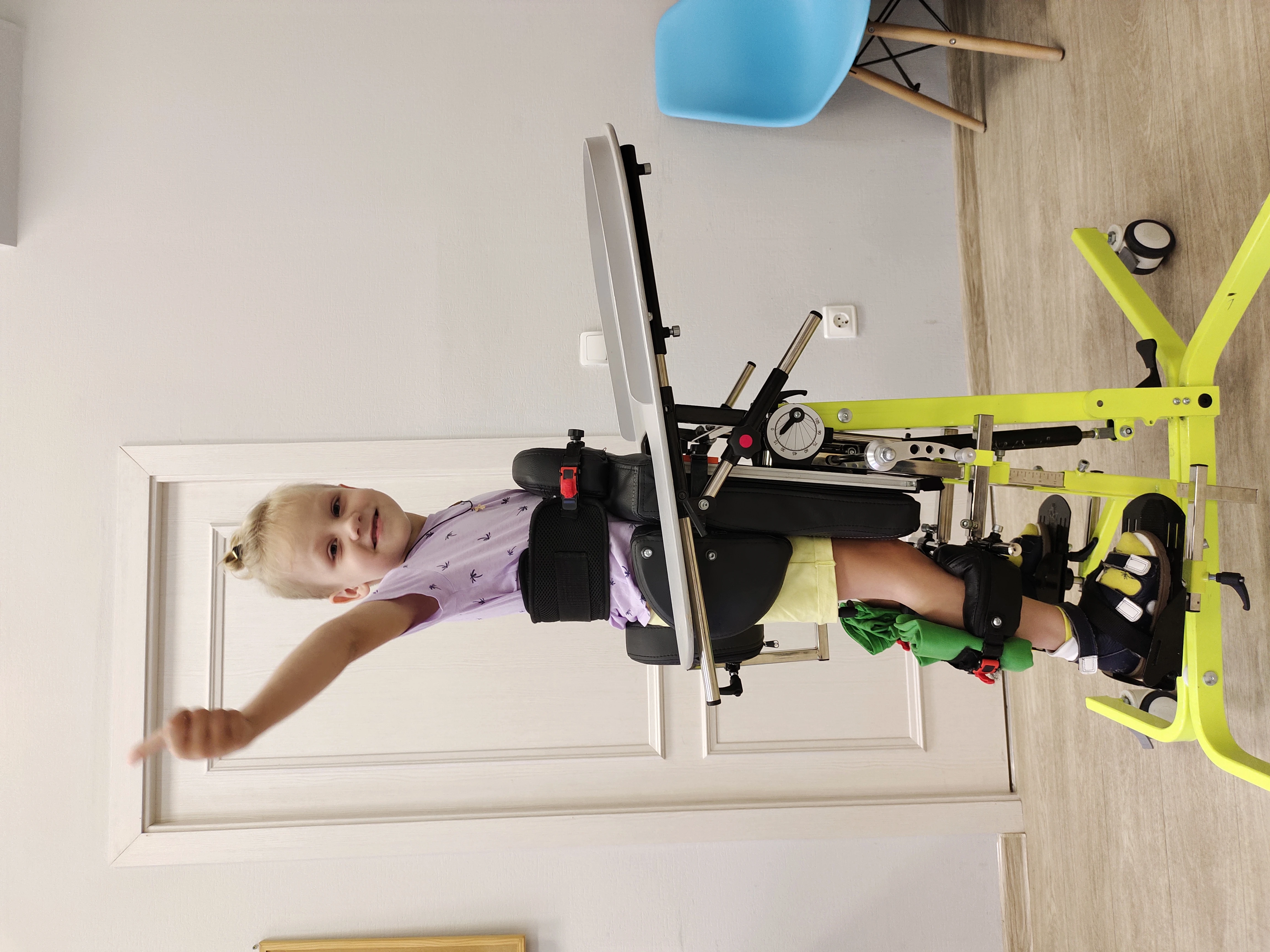 - Возможность разведения каждой ноги до 30°. Такая функция позволяет точно настроить вертикализатор для реабилитации под индивидуальные потребности каждого малыша, обеспечивая максимальное удобство и эффективность.