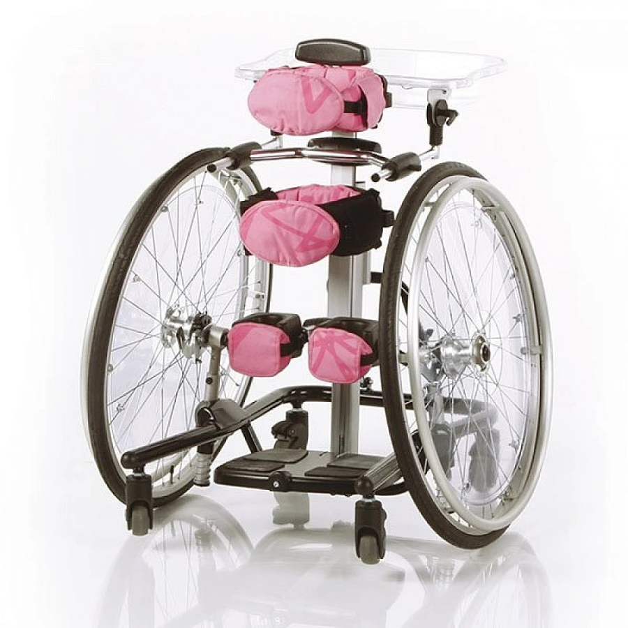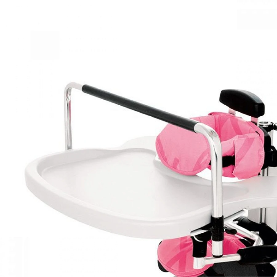 В комплектацию представленной модели вертикализатора для детей с ДЦП входит две пары колес. Первая пара колес маленького диаметра, предназначенная для занятий и тренировок, позволяет ребенку легко перемещаться, изменять направление и маневрировать. Вторая пара колес большего диаметра предназначена для комфортного перемещения ребенка по комнате.Вертикализатор для ДЦП оборудован специальным столиком, который предоставляет возможность детям свободно играть и взаимодействовать с окружающей средой в вертикальном положении. Это создает более равные условия и возможности для занятий и коммуникации с другими детьми и взрослыми.
