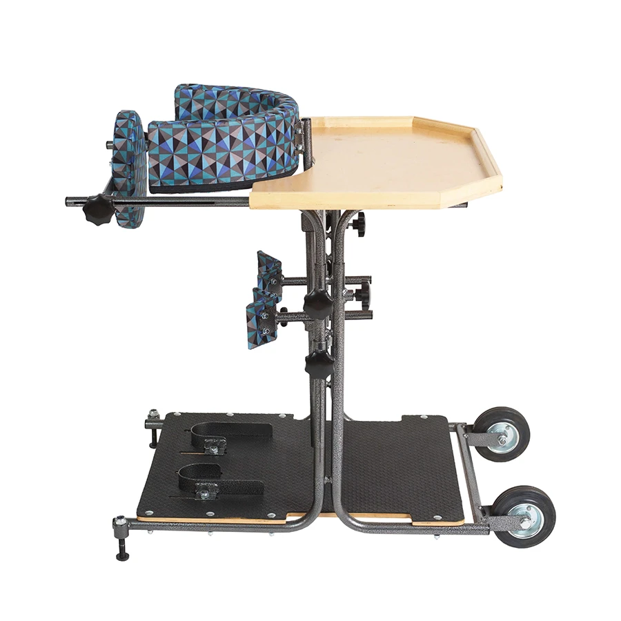Надежная и устойчивая конструкция обеспечивает безопасное размещение ребенка, что защищает его от падений или травм в процессе вертикализации. Устойчивость модели делает ее идеальной для использования как в домашних условиях, так и в реабилитационных центрах.Еще одним значительным преимуществом данной модели является использование высококачественных материалов. Войлок обеспечивает дополнительную теплоизоляцию, что особенно важно в холодное время года, а винилискожа легко очищается и устойчива к износу.