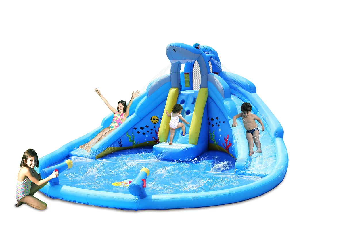 - Водные развлечения 2-в-1 – бассейн для купания + горка для веселых спусков