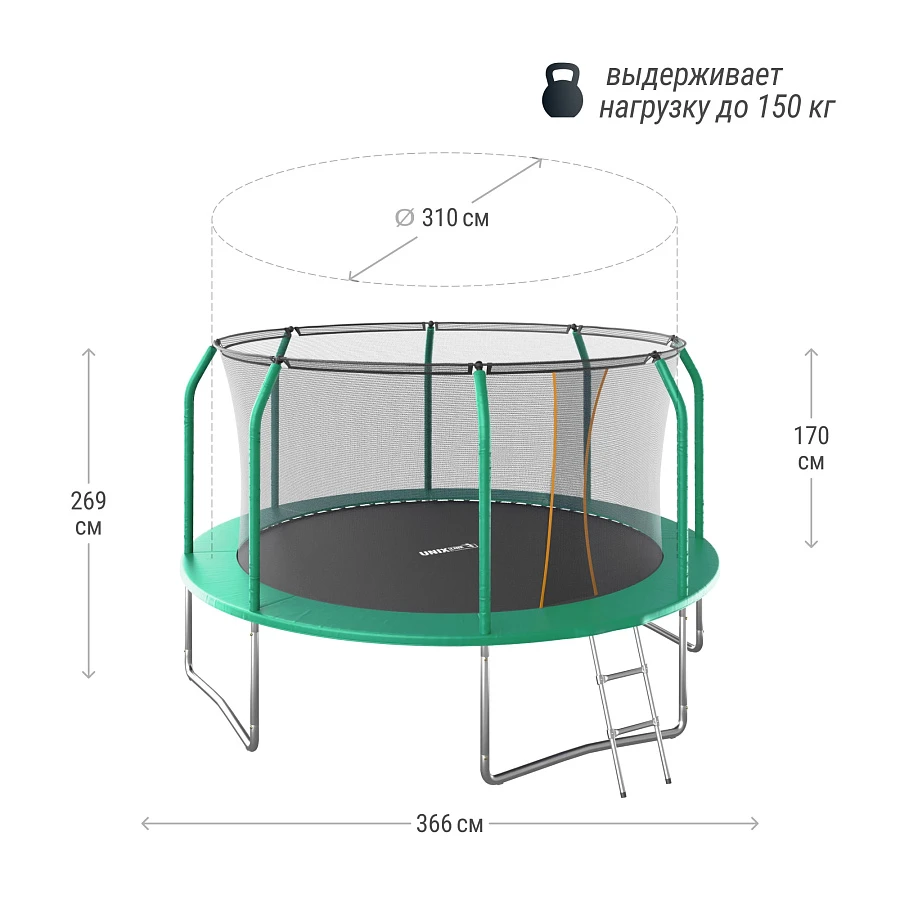 | Материал прыжкового полотна | Перматрон (Permatron) cо специальной пропиткой |