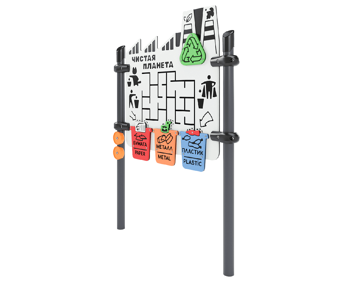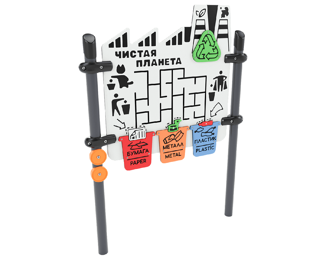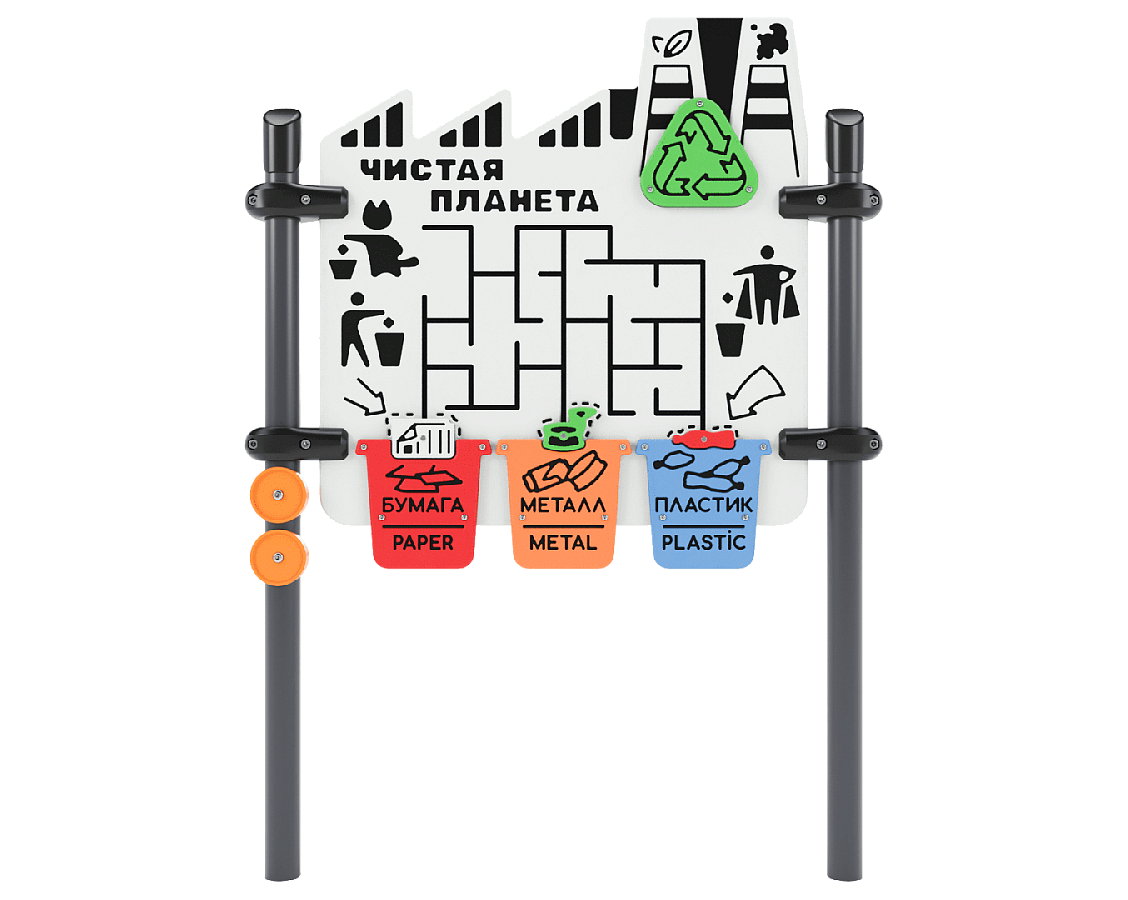 - Панель состоит из игрового поля и подвижными бегунками в виде отходов. Задача игры заключается в передвижении бегунков по полю.