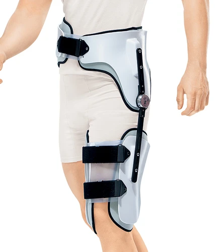 Возможность регулировать угол сгибания шарнира позволяет использовать аппарат на всех этапах лечения и реабилитации, поэтапно увеличивая подвижность сустава.