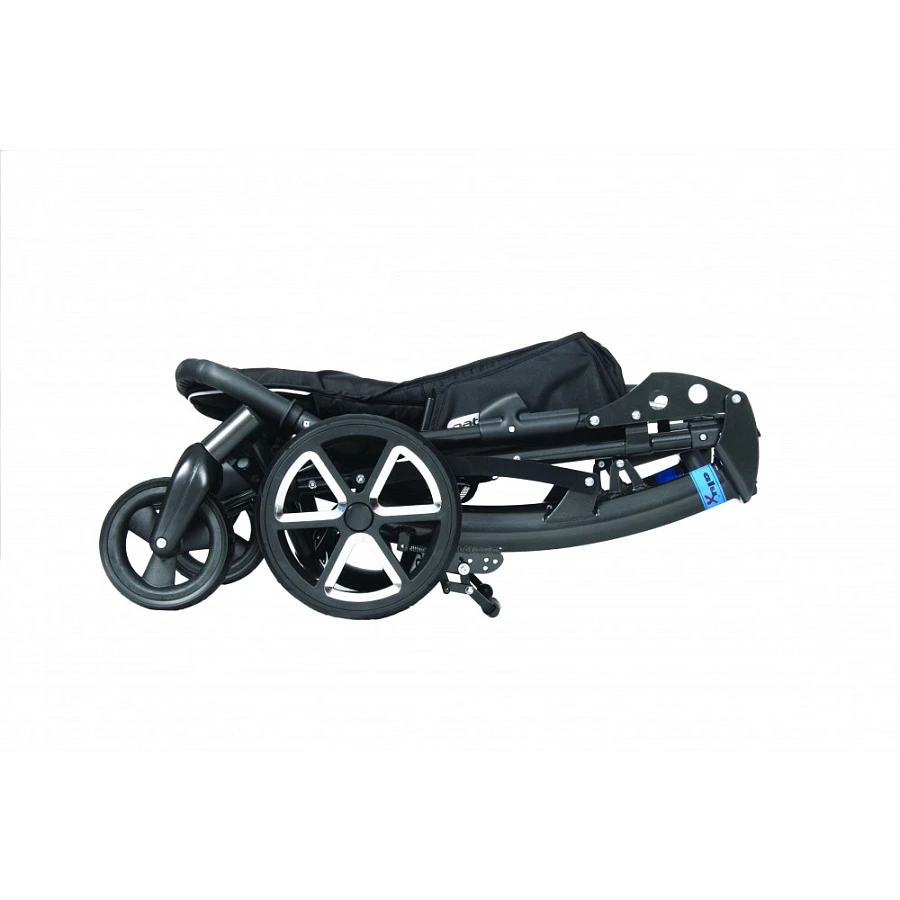 Дизайн коляски позволяет сложить ее в очень компактный размер. Максимально уменьшенная ширина между колесами и сидением позволяет пройти в размере STD(стандарт) даже в помещении шириной в 60 см.