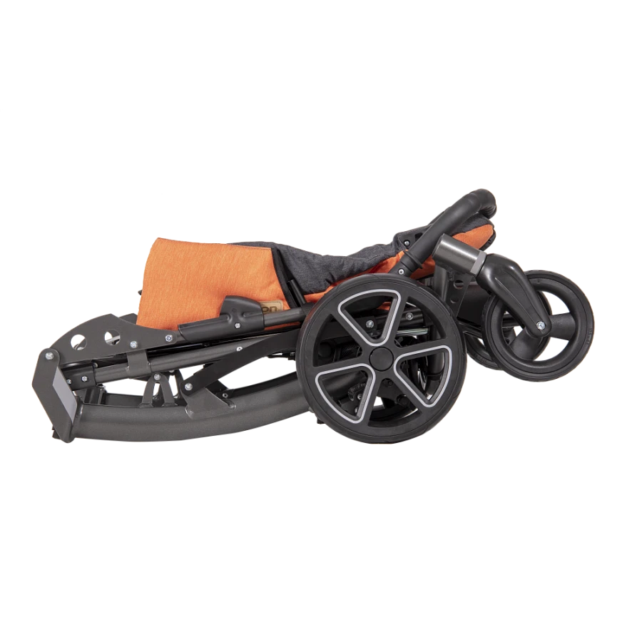 Дизайн коляски позволяет сложить ее в очень компактный размер. Максимально уменьшенная ширина между колесами и сидением позволяет пройти в размере STD(стандарт) даже в помещении шириной в 60 см.