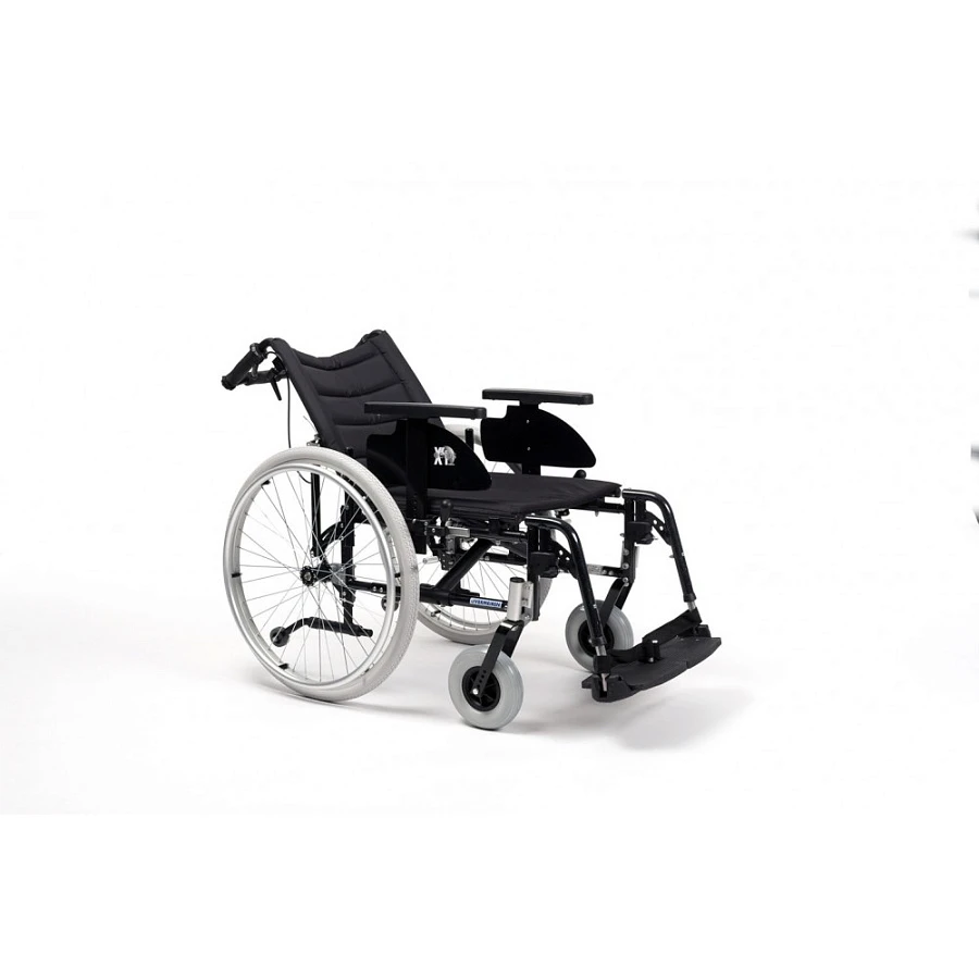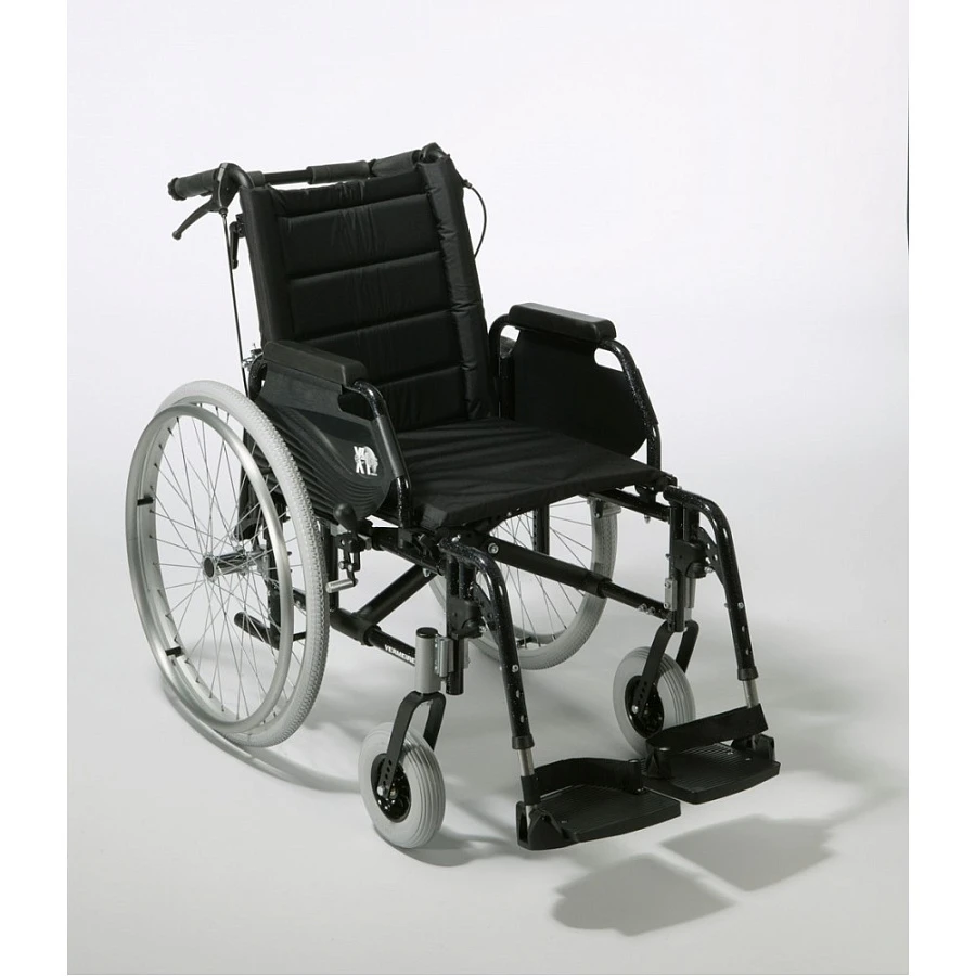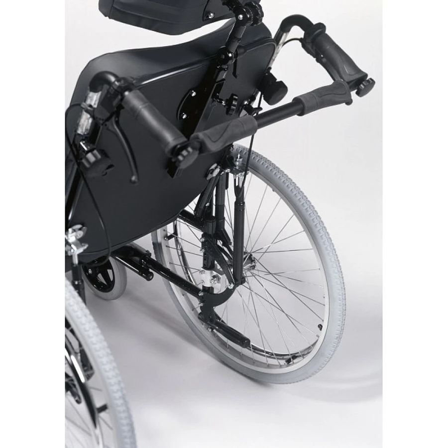 Коляска может быть укомплектована как литыми, так и пневматическими быстросъемными колесами. С помощью улучшенных адаптеров задние и передние колеса можно настроить по высоте и глубине, делая коляску либо более маневренной, либо более устойчивой. Коляска может быть оснащена съемными откидными скошенными подлокотниками или подлокотниками с регулировкой высоты. Подножки съемные, с регулировкой длины и возможностью складывания как внутрь, так и наружу. Имеется возможность установки ортопедических подножек, регулируемых по углу подъема. Отличительной особенностью данной модели является возможность регулировки сидения по глубине, высоте и углу наклона и спинки по наклону до 30 градусов и высоте на 10 см. Модель оснащена ручным стояночным тормозом.