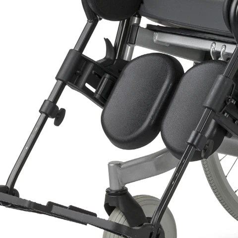 Коляска доступна в комплектации MEDIUM: регулировка глубины сидения, регулировка угла наклона сидения, регулировка угла наклона спинки, боковые пеллоты, подголовник, передние колёса 200х50 PU, задние колёса 24"x13/8", подлокотники с регулировкой высоты и глубины, подножки раздельные с регулировкой угла наклона, антиопрокидыватели