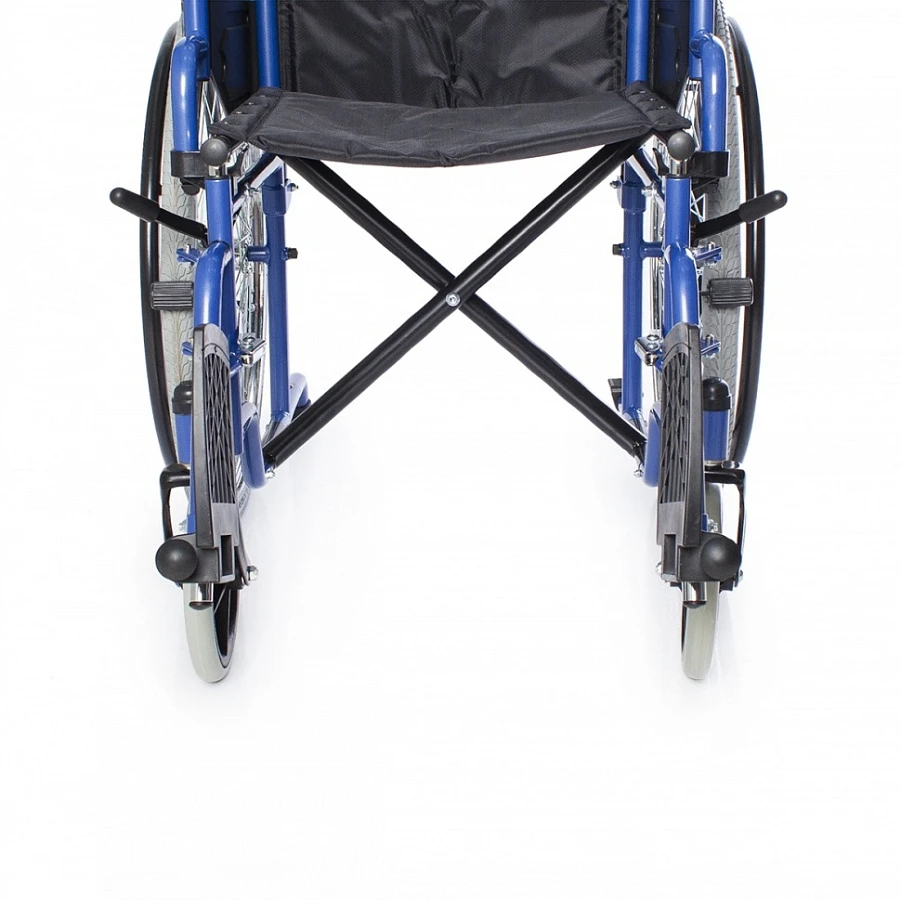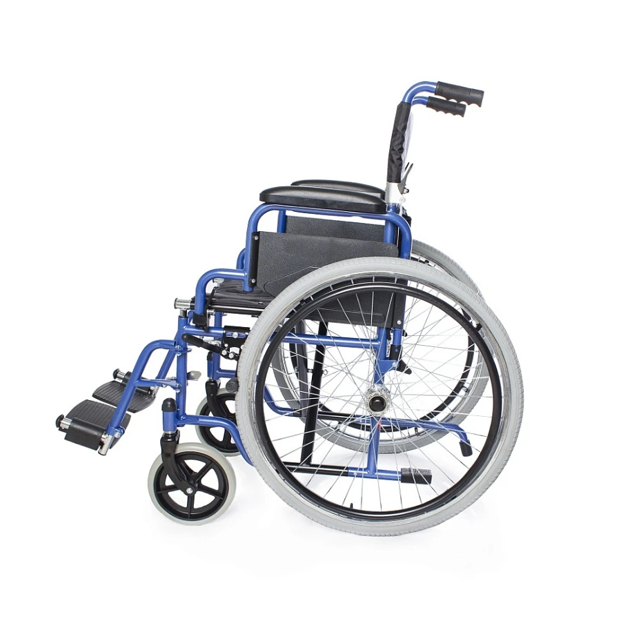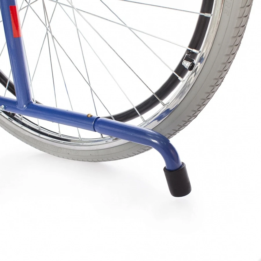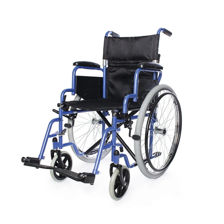 При этом передние колёса вращаются вокруг своей оси, позволяя беспрепятственно выбирать направление движения. Задние колёса оснащены специальными ободами, предназначенными для самостоятельного перемещения. Для перемещения с помощью помощника предусмотрены специальные прорезиненные ручки. Конструкция кресла-коляски - складная. Подножки и подлокотники съёмные. Колёса оснащены тормозами. Внизу рамы, для предотвращения опрокидывания предусмотрен антиопрокидыватель, выполнен в виде труб.