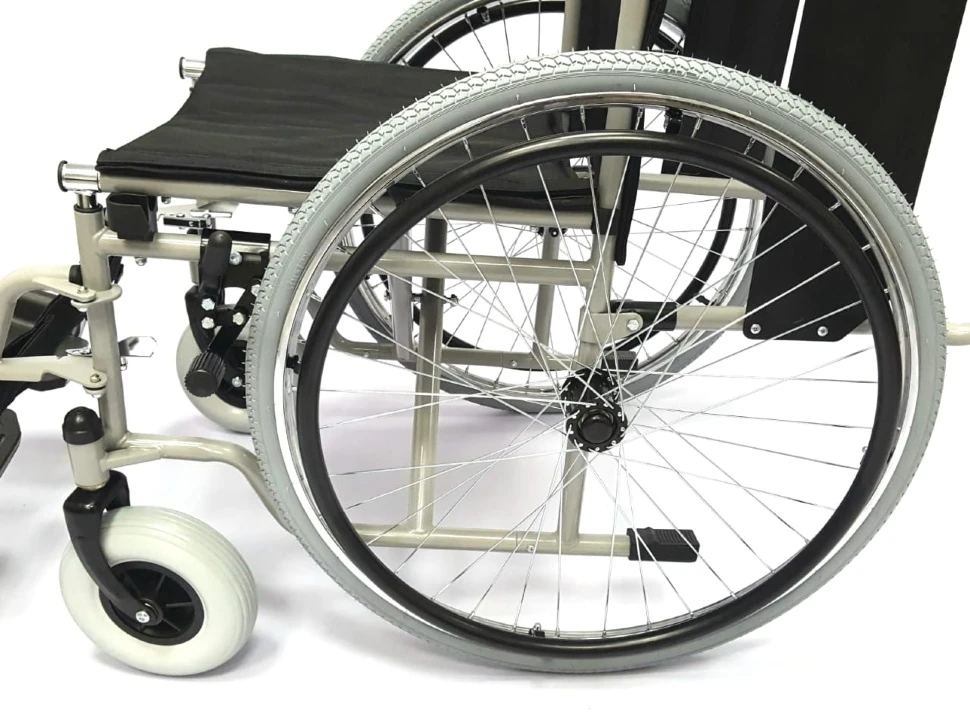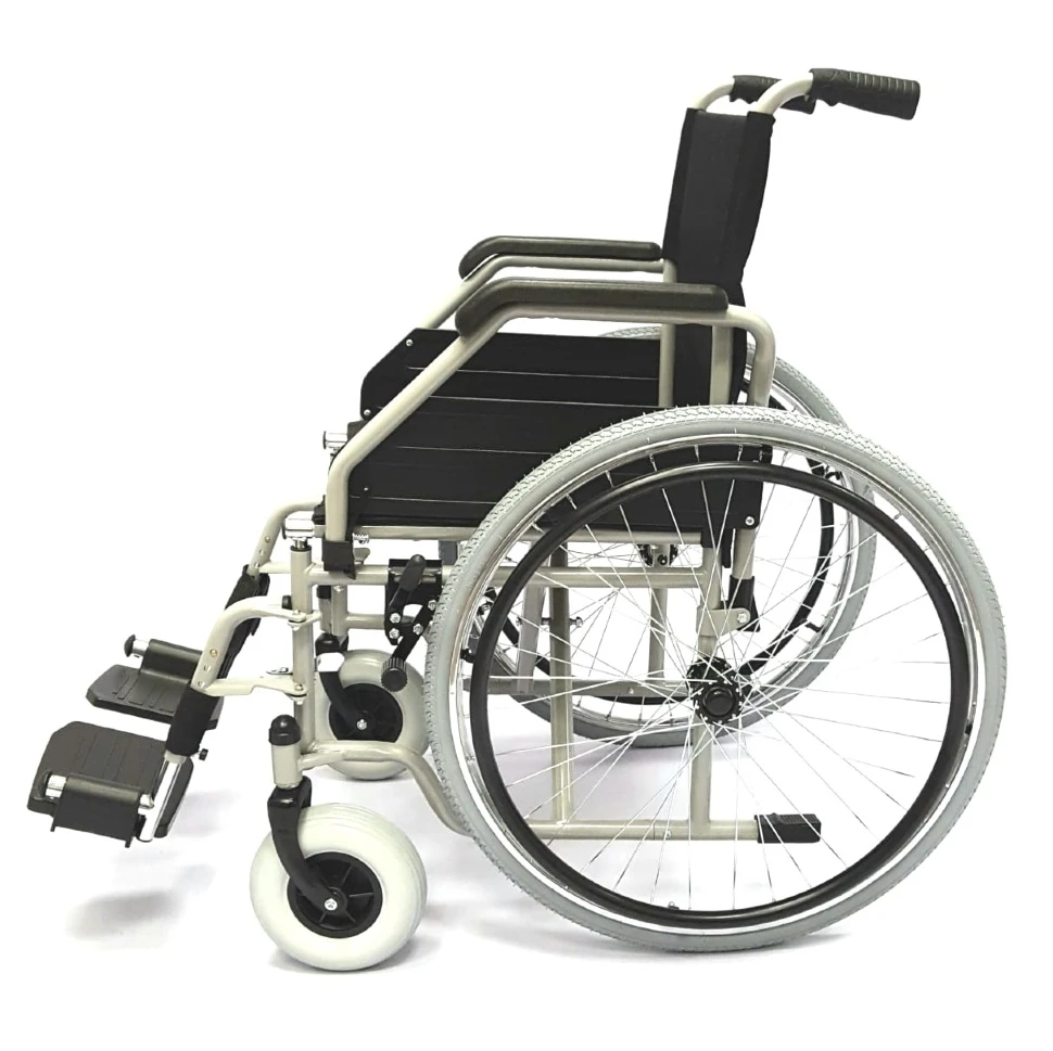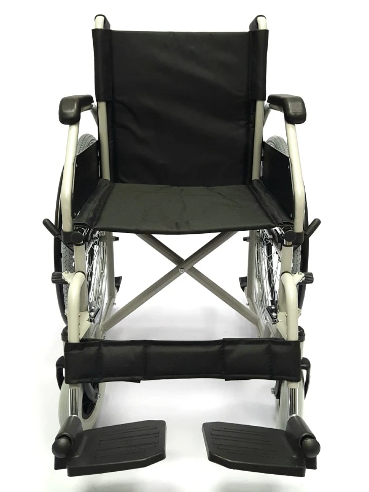 Кресло-коляска инвалидная стандартная комнатная прогулочная складная LY-250 (250-041), ширина сиденья 43, 46, 51 см, максимальный вес 120 кг. Кресло коляска складная с ручным приводом LY-250-041 предназначена для передвижения больных c частичной утратой функций опорно-двигательного аппарата в помещениях и на площадках с твердым покрытием для преодоления незначительных расстояний. LY-250-041 - доступная немецкая инвалидная коляска с надежной рамой из стали, складной конструкцией и стандартным набором функций, облегчающих пересаживание в кресло: откидными подлокотниками с накладками и поворотно-съемными подножками регулируемой длины. Конструкция подлокотников позволяет вплотную подъезжать к столу и другим препятствиям.