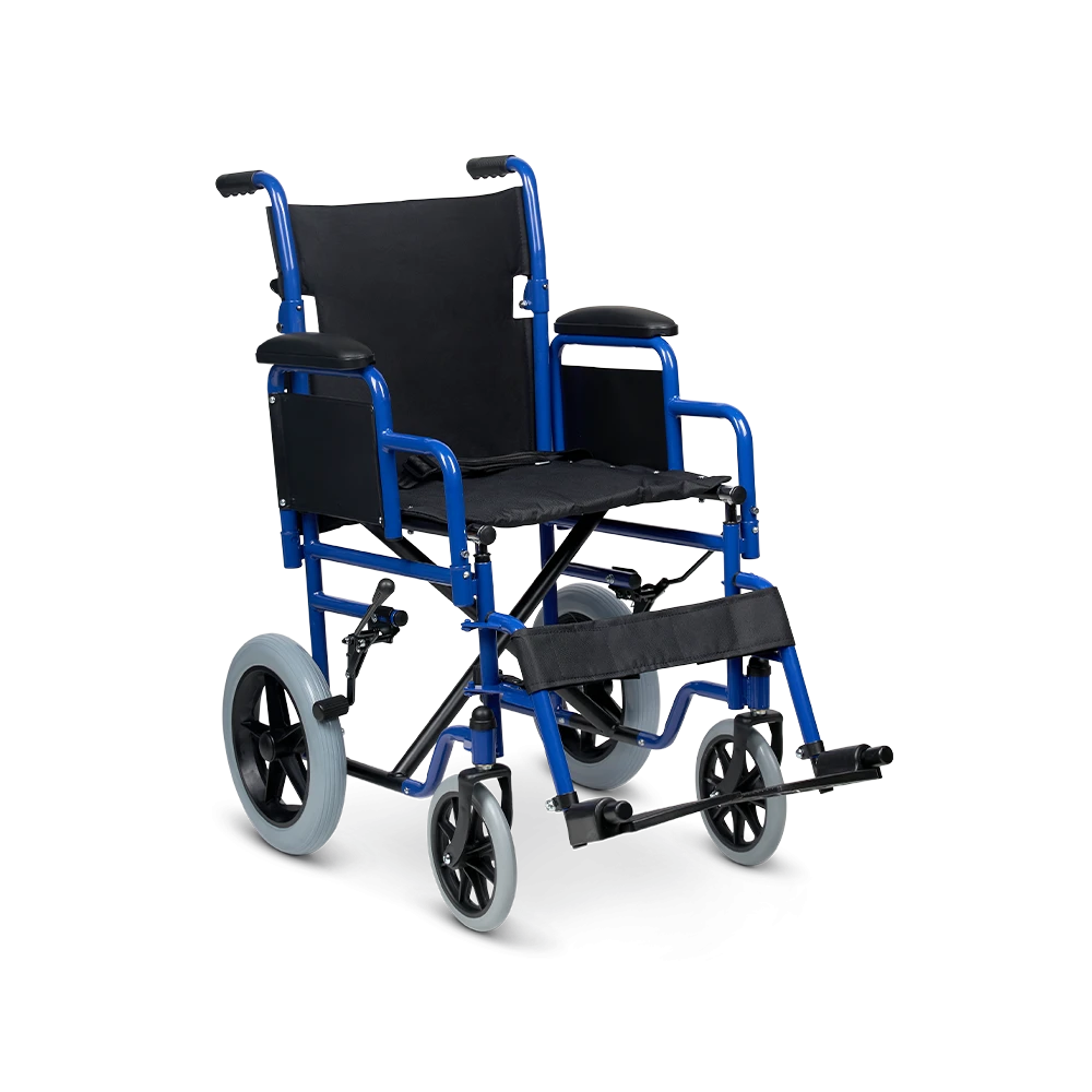 Максимальная нагрузка на кресло коляску – 110 кг. Коляска узкая, у вас не возникнет проблем с проходом в узкий лифт или дверной проем. Также предусмотрен складной механизм для удобной транспортировки и компактного хранения.