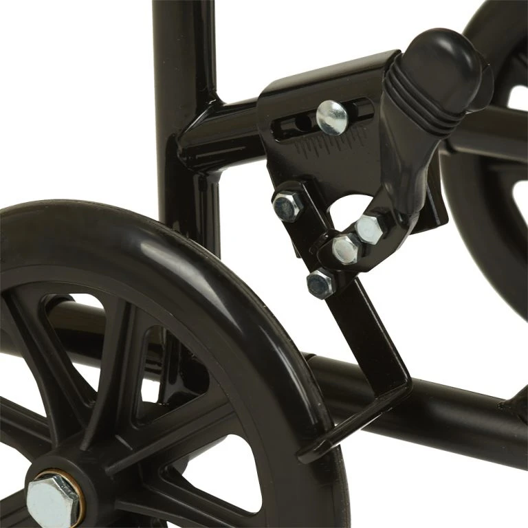 Рама кресла-каталки также оснащена специальным механизмом, который в считанные секунды позволяет компактно сложить каталку для хранения или перевозки.