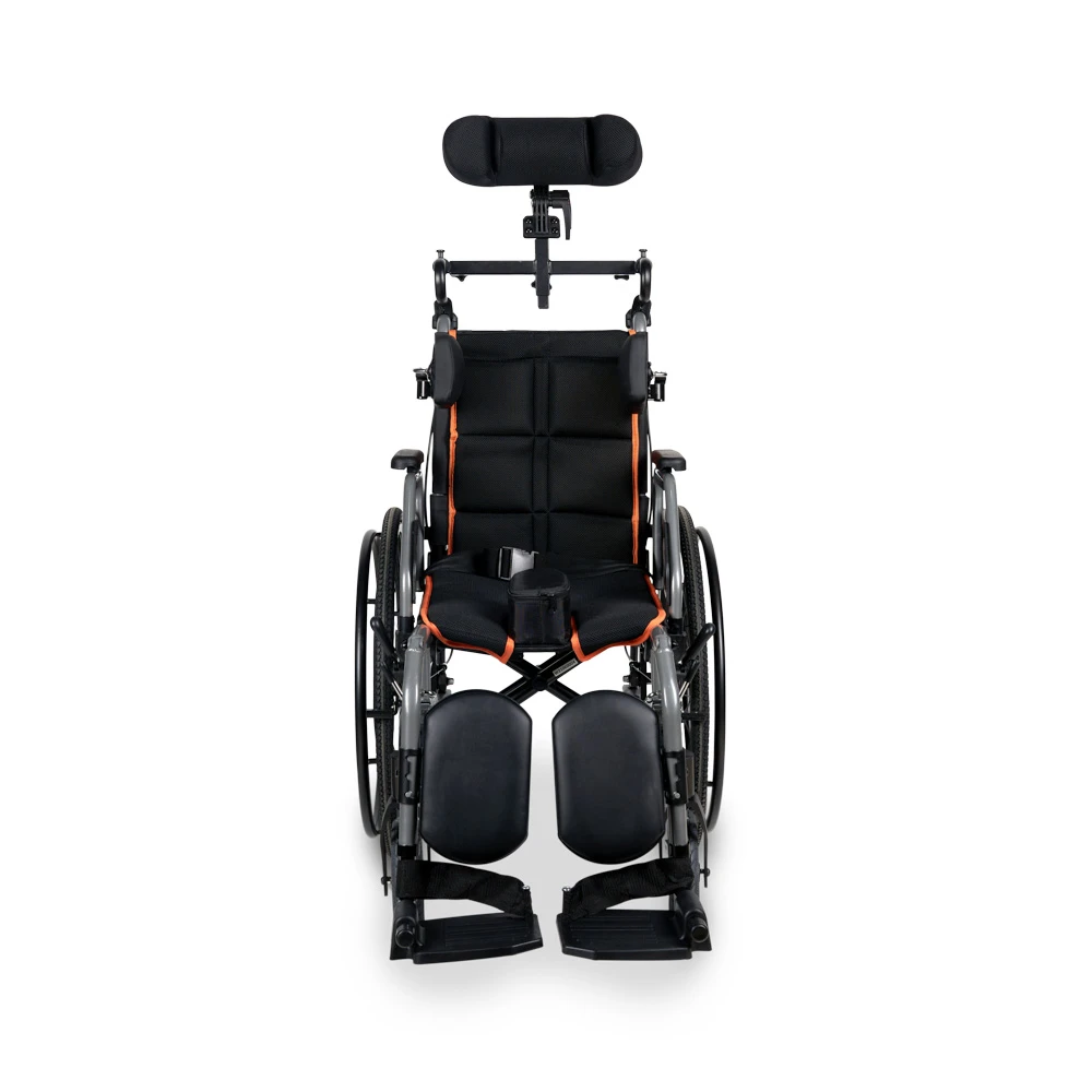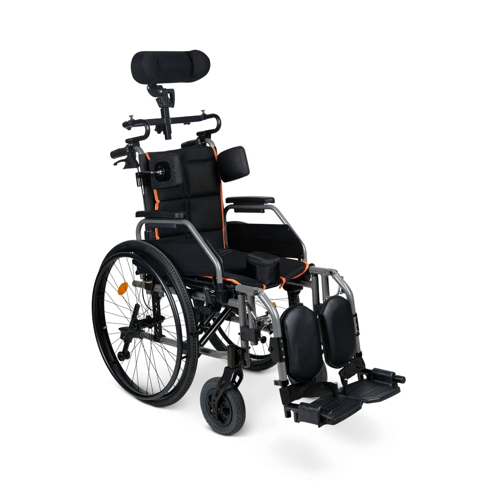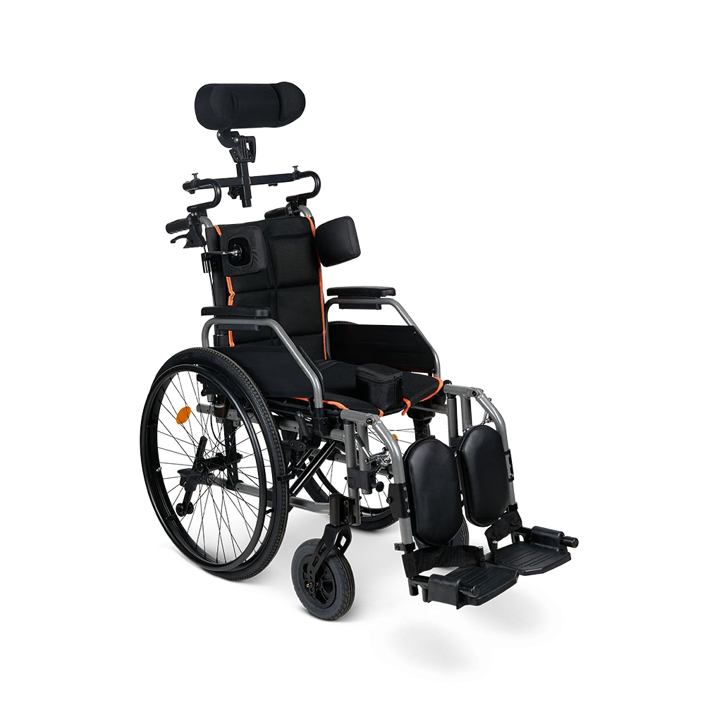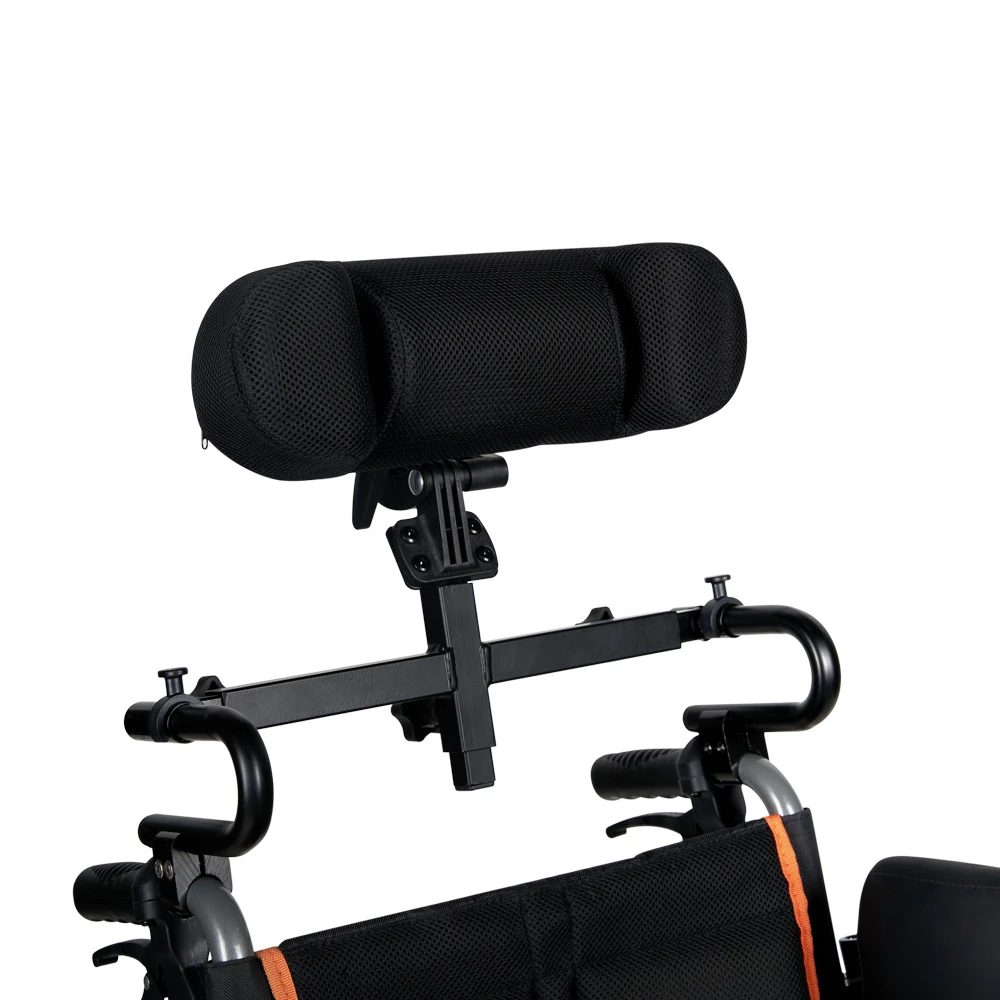 Скошенные подлокотники регулируются по высоте и положению в пространстве, не мешают близкому подъезду к столу. Для удобной посадки и высадки х можно отодвинуть или снять полностью. Мягкий подголовник с поддерживающими подушками регулируется по высоте.