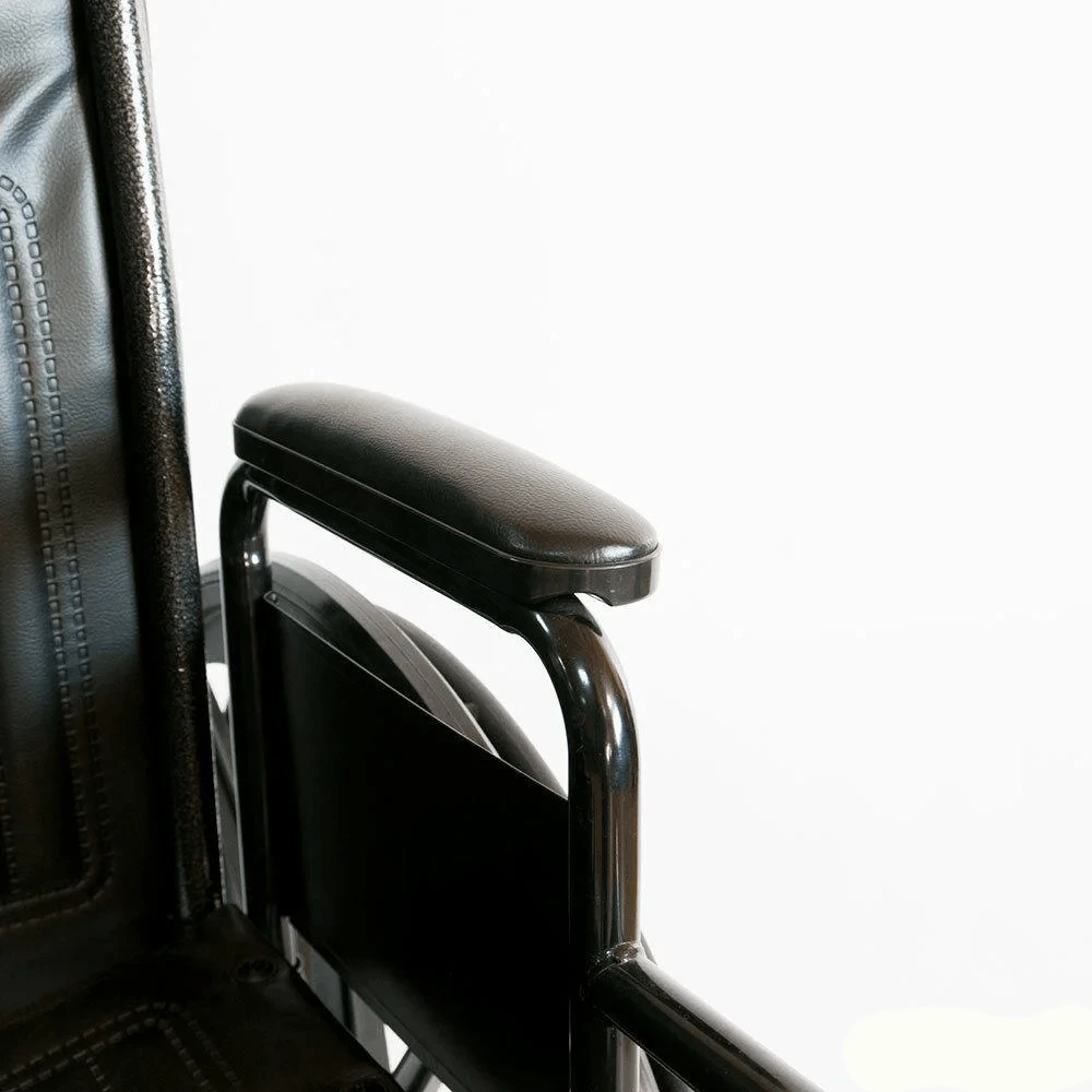 Производитель позаботился о комфорте: мягкие подлокотники снимаются, опоры для голени в виде подушечек регулируются по высоте, откидные опоры для стоп, прорезиненные ручки для сопровождающего лица и складная конструкция стальной рамы.