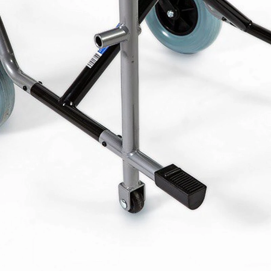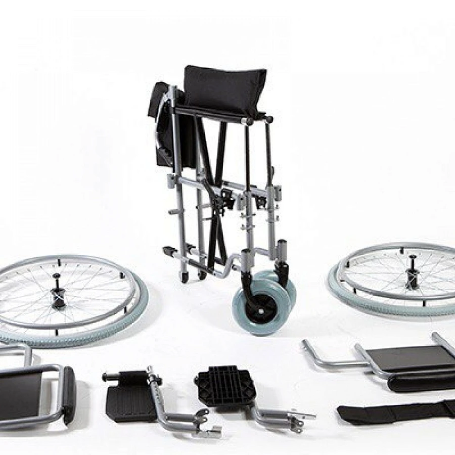 - Изделие складывается по вертикали, подлокотники, подножки и колеса снимаются, что упрощает транспортировку и хранение конструкции.