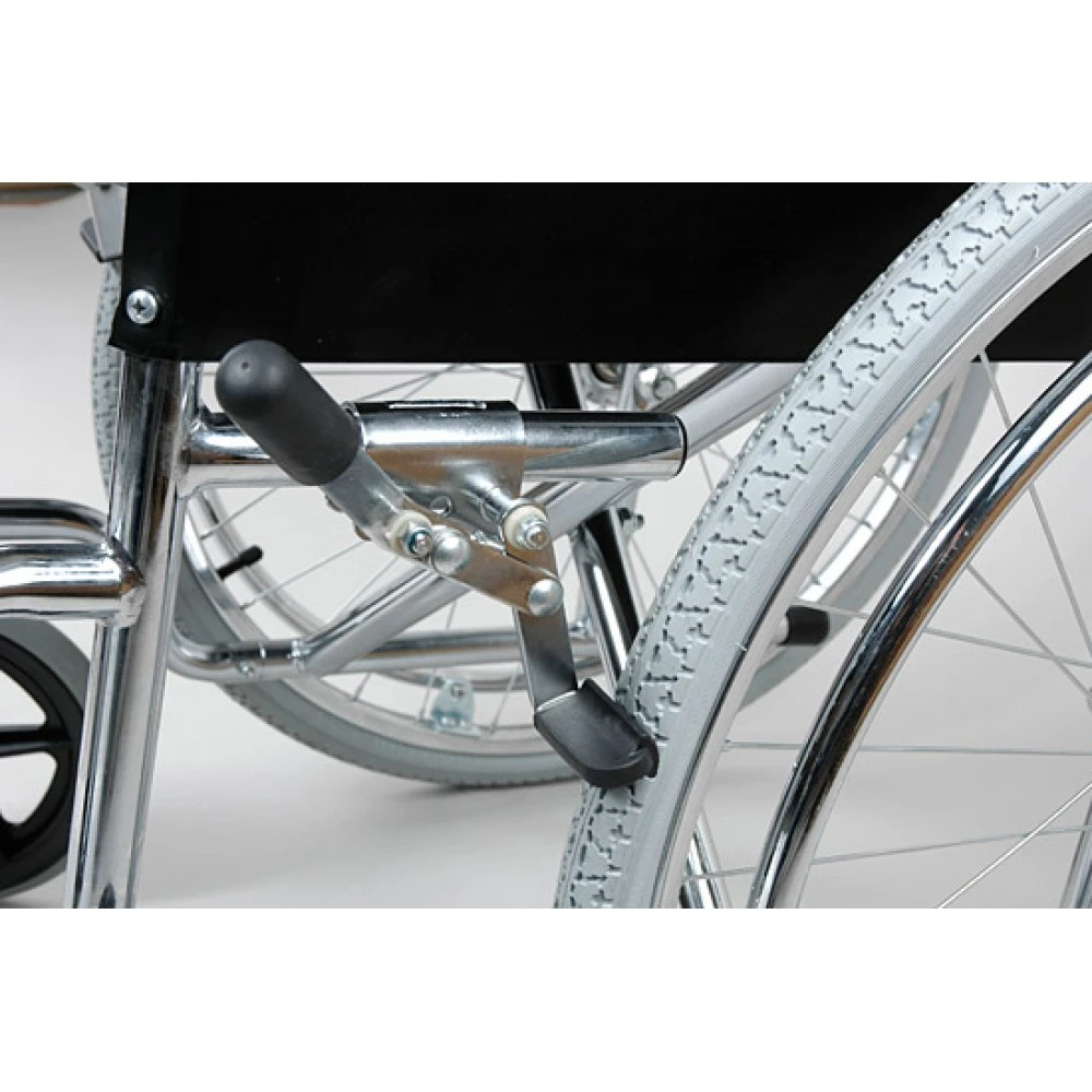 Кресло-коляска стандартное для инвалидов Барри B2 (1618c0102sp) оснащено несъемными опорами для ног, которые регулируются по высоте. Металлическая рама изготовлена из хромированной стали, что наделяет коляску особой прочностью. Модель управляется самостоятельно или сопровождающим лицом. Задние приводные колеса оборудованы рычагами стояночного тормоза.