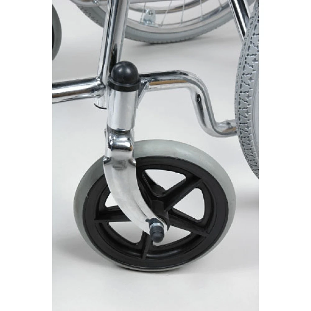 Кресло-коляска Barry B2 (1618c0102sp) – недорогое прогулочное и комнатное средство передвижения для инвалидов. Модель складывается по ширине без применения инструментов – при хранении и перевозке занимает мало места. Искусственная кожа, из которой выполнена обивка кресла и ложементы на фиксированных подлокотниках, стойка к частым санитарным обработкам.