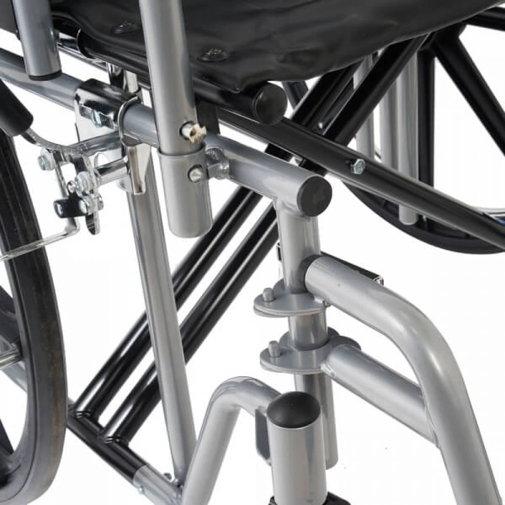 Ширина сиденья представлена в двух типоразмерах: 56 см и 61 см. Широкие передние колеса и литые шины приводных колес обеспечивают простоту эксплуатации и ухода. Форма подлокотников позволяет подъехать к столу, а возможность снимания без инструментов облегчает процесс пересаживания. Складная конструкция и съемные подножки обеспечивают компактность для транспортировки и хранения.