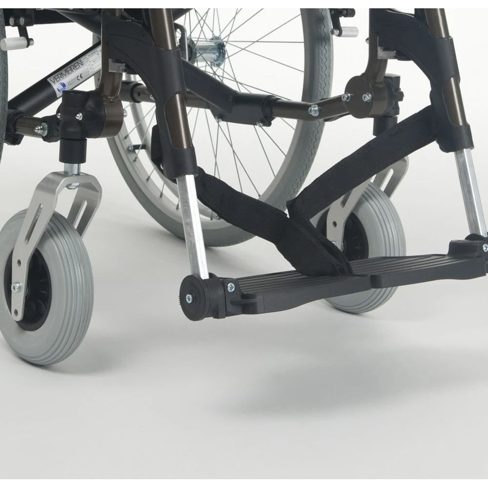 Кресло-коляска Vermeiren V300 с ручным приводом подойдет для активных людей с ограниченными возможностями, так как обладает маневренностью и имеет огромное количество индивидуальных настроек. Отличительной особенностью модели является возможность регулировки натяжения спинки и сидения с помощью специальных ремней. Коляска Vermeiren V300 просто идеальна для людей, которым важны постоянное движение и комфорт. Конструкция рамы выполнена из алюминиевого сплава высокого качества. Она легкая , складная, но в то же время прочная. Подлокотники по выбору могут быть: откидные скошенные или удлиненные и регулироваться по высоте. Коляска может быть укомплектована как литыми, так и пневматическими быстросъемными колесами, которые с помощью специальных адаптеров легко регулируются по высоте. Регулируемые по высоте подножки, легко снимаются или отводятся в сторону для удобства пересаживания пользователя. Модель оснащена ручным стояночным тормозом.