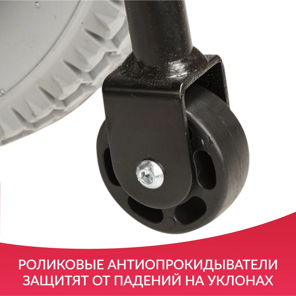 Общая ширина коляски (всего 58 см) позволяет человеку без труда проезжать в узких коридорах. Передние и задние пневматические колеса обеспечивают мягкое, гладкое скольжение на неровных поверхностях.