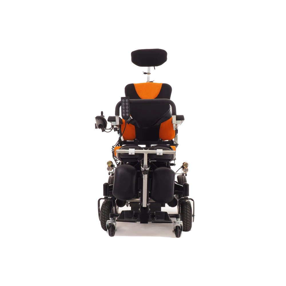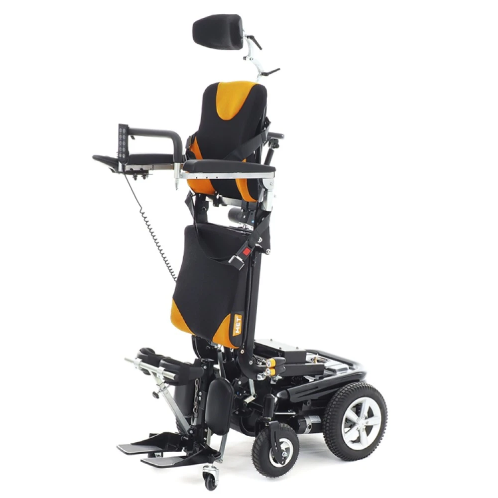 Кресло-коляска с электровертикализатором MET VERTIC 2 сочетает в себе функции электрического кресла-коляски, электроприводного вертикализатора и процедурной кушетки высотой до 81 см, потому что кресло, оснащённое электроактуаторным лифтом под сиденьем, раскладывается в горизонталь и может использоваться как ложе для медицинских манипуляций. Электроприводное шасси не теряет работоспособности ни в вертикальном, ни в горизонтальном положении кресла и этим может пользоваться больной и помогающие ему люди.