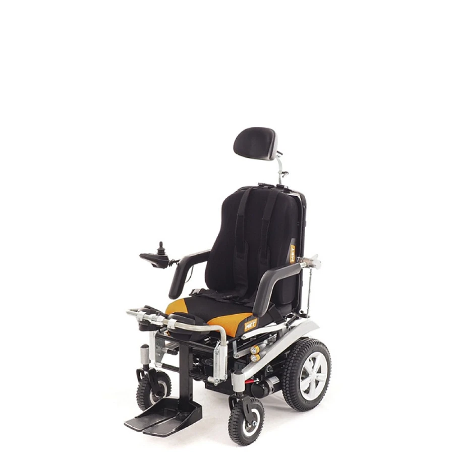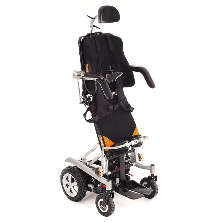 Кресло-коляска с электровертикализатором MET VERTIC сочетает в себе функции электрического кресла-коляски и электроприводного вертикализатора и выполнено в современном спортивном дизайне. Ортопедическое сиденье в съёмных чехлах из 3D-сетки Air Mesh - это оптимальное решение для крупных пациентов, т.к. AirMesh, это лучшее на рынке влагоотведение. Для первых вертикализаций, зачастую связанных с болью, спинка и сиденье из такого нейлона окажутся комфортным подспорьем.