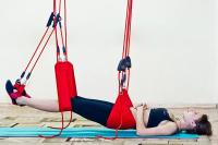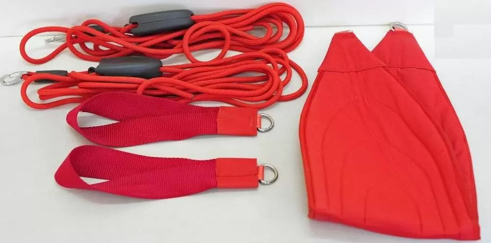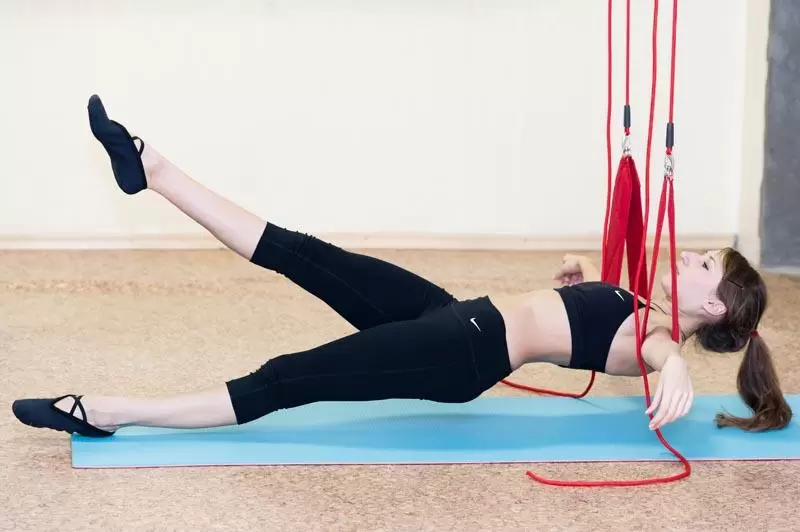 - тренировка активных и пассивных движении, используя дополнительные точки подвешивания (например, подвесив ногу за стопу и под коленом, чтобы уменьшить нагрузку на коленный сустав)