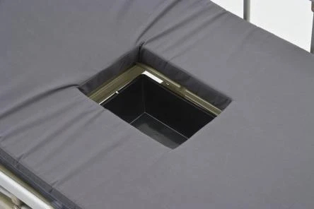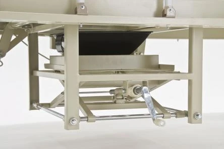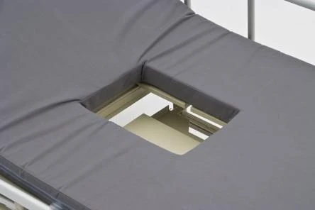 Кровать оснащена выдвижным туалетным устройством. При вращении рычага в середине кровати открывается отверстие для туалетного приспособления с судном. Выдвижной регулятор судна расположен в средней части кровати, что позволяет персоналу легко "менять утку".