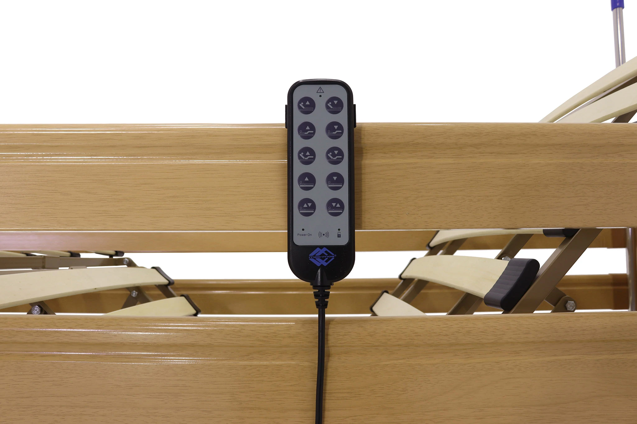 Представленная модель кровати медицинской электрической оснащена удобным и интуитивно понятным пультом управления, который позволяет пациентам контролировать и регулировать положение кровати. Пульт легко доступен и может использоваться даже людьми с ограниченными физическими возможностями.