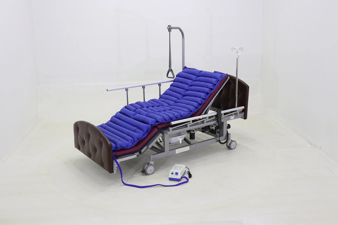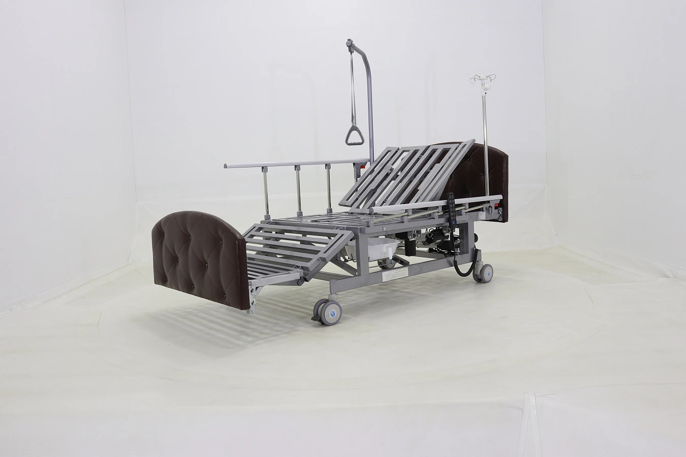 Одним из основных преимуществ представленной модели является наличие электропривода. Это позволяет пациенту самостоятельно регулировать угол наклона изголовья и ножного конца кровати, что способствует более удобному положению тела и снижает нагрузку на опорно-двигательный аппарат.