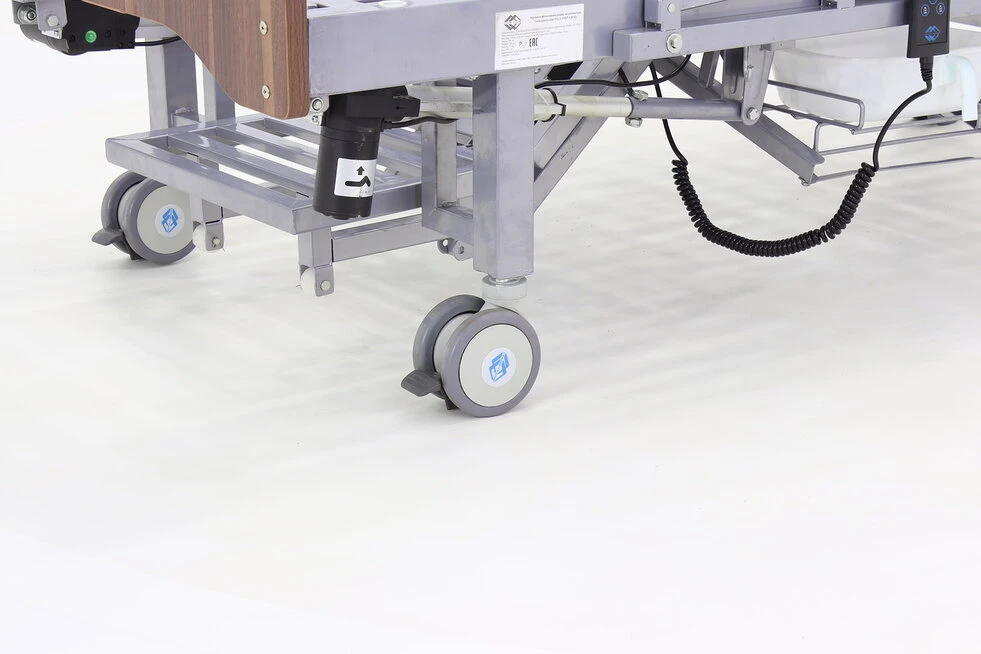 Кровать имеет электрический привод, благодаря которому можно изменять положение ее секций в зависимости от потребностей больного. Модель имеет 10 секций и 5 функций. Положение секций можно легко регулировать, фиксируя в нужном положении. Есть функция бокового переворачивания. Максимально возможная нагрузка на кровать составляет 250 килограмм, ее собственный вес – 92 кг.