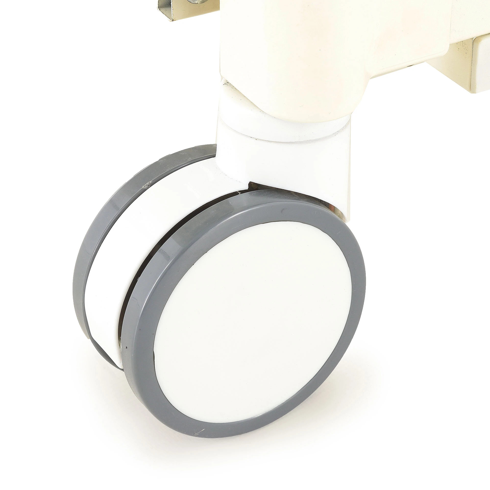 Ножки оборудованы самонаправляющимися колесами, что дает возможность в считанные секунды превратить медкровать в каталку. Безопасность при этом обеспечивает центральный тормоз, мгновенно блокирующий все колеса одним нажатием на педаль.