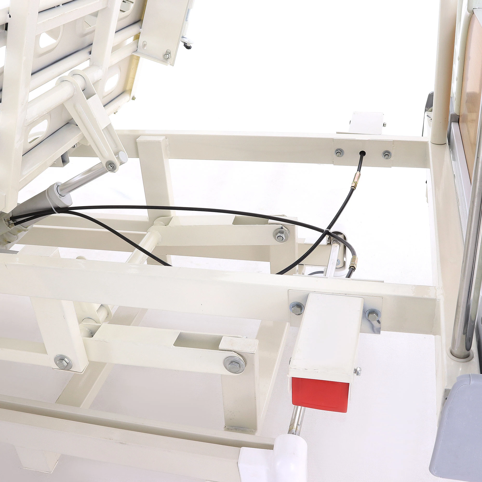 4-секционное ложе раздвигается в длину на 20 см. Это позволяет решить некоторые сложности, возникающие в связи с ростом больного или необходимостью придать его туловищу положение, облегчающее его состояние.