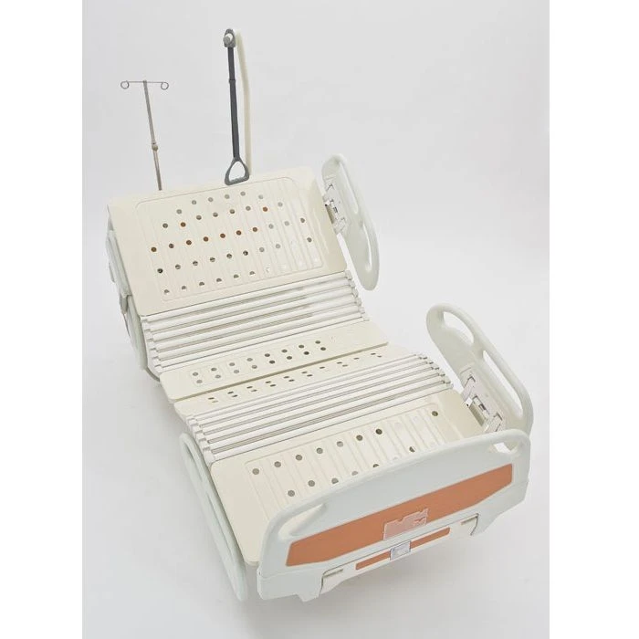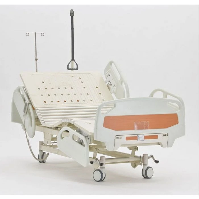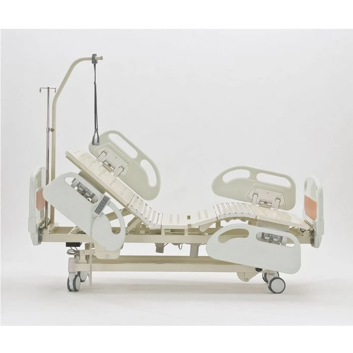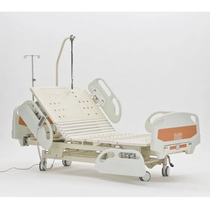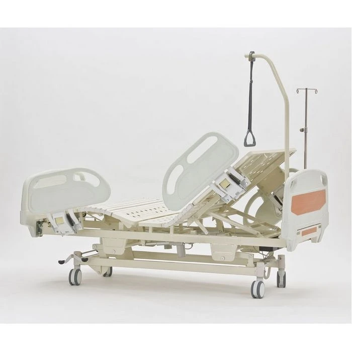 Медицинская 4-х секционная кровать с электрической регулировкой секций DB-2 (ММ-74), высоты ложе и положения Тренделенбурга/Антитренделенбурга. Предназначена для профессионального ухода за пациентами в палатах интенсивной терапии. Оснащена стальным ложе, съемными спинками, 4-мя складными пластиковыми ограждениями, 4-мя колесами с центральным тормозом и кабельным пультом управления. Пульт управления используется для изменения высоты ложе, угла наклона головной и ножной секций, а также для установки положения Тренделенбурга/Антитренделенбурга.