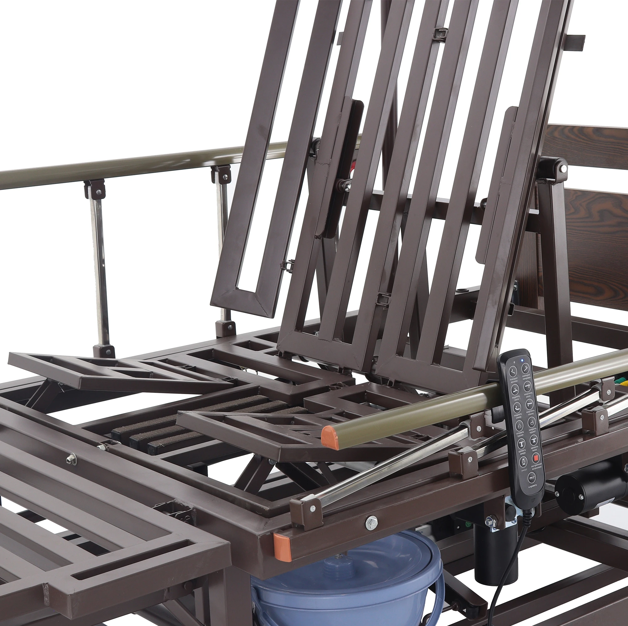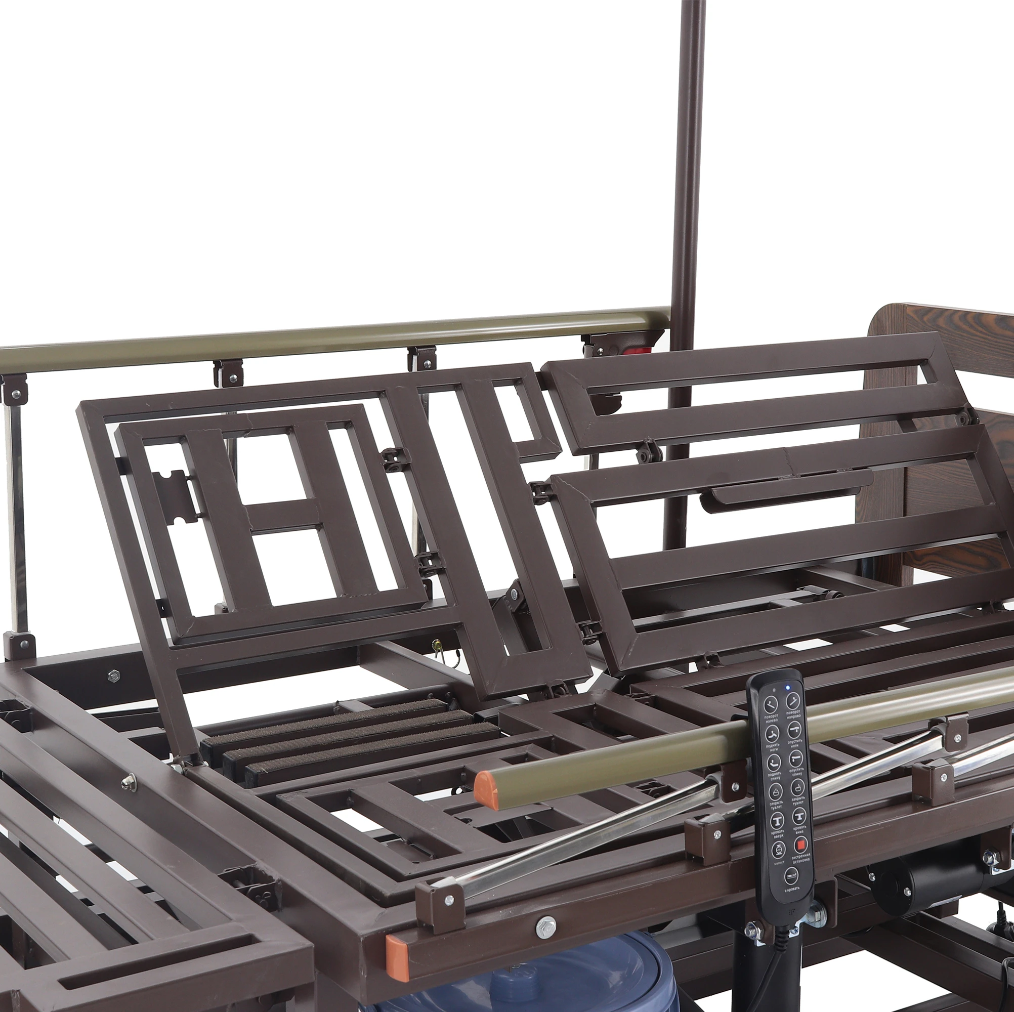 Также в комплектацию представленной модели электрической кровати входят боковые ограждения, подъемные опоры и столик. Эти дополнительные функции предлагают еще больший уровень безопасности и комфорта.