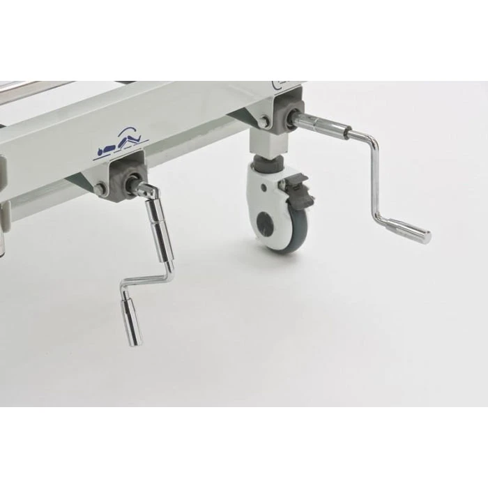 - Выдвижные регуляторы положения ложа расположены в ножной части кровати, что позволяет персоналу легко регулировать положение ложа.