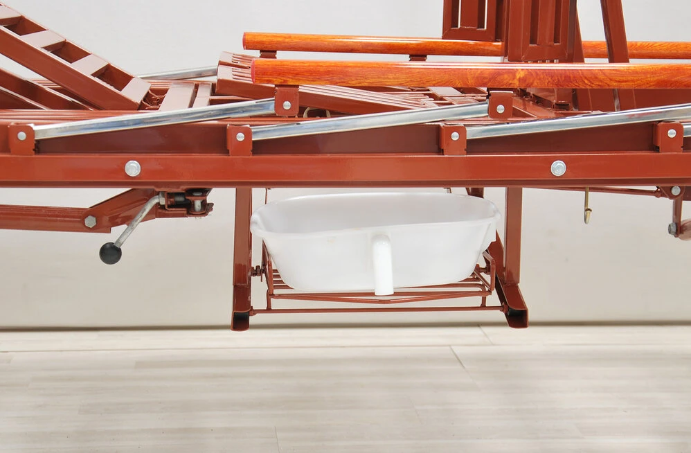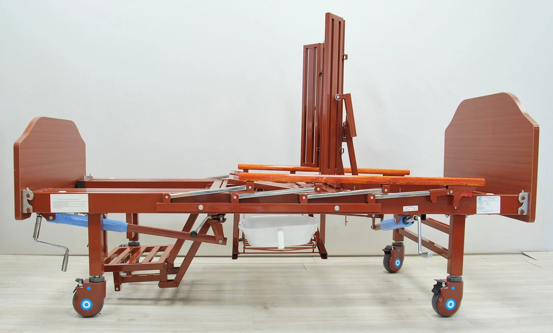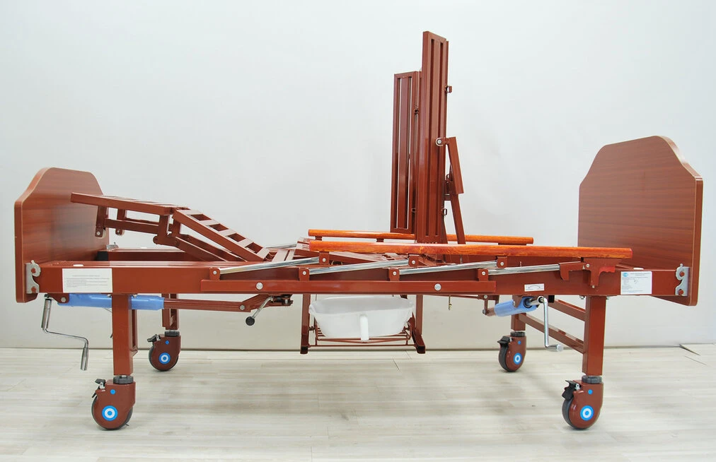 - туалетное устройство — медицинская кровать с туалетом позволяет пациенту избежать лишних движений при справлении естественных надобностей, что очень важно при тяжелых травмах и заболеваниях.